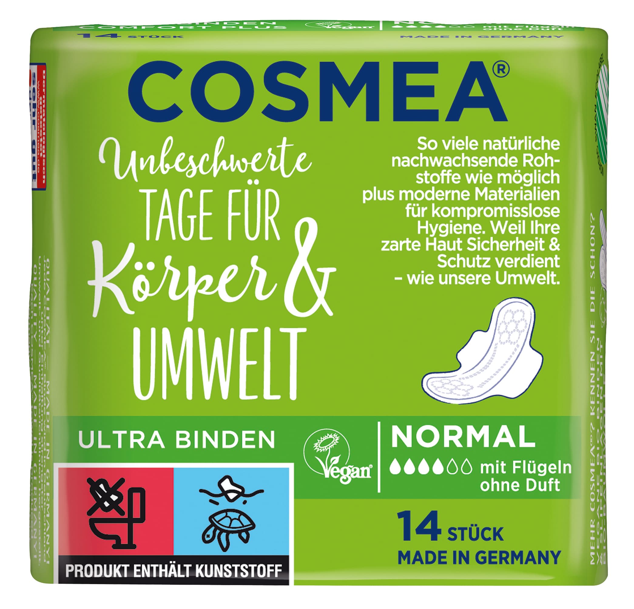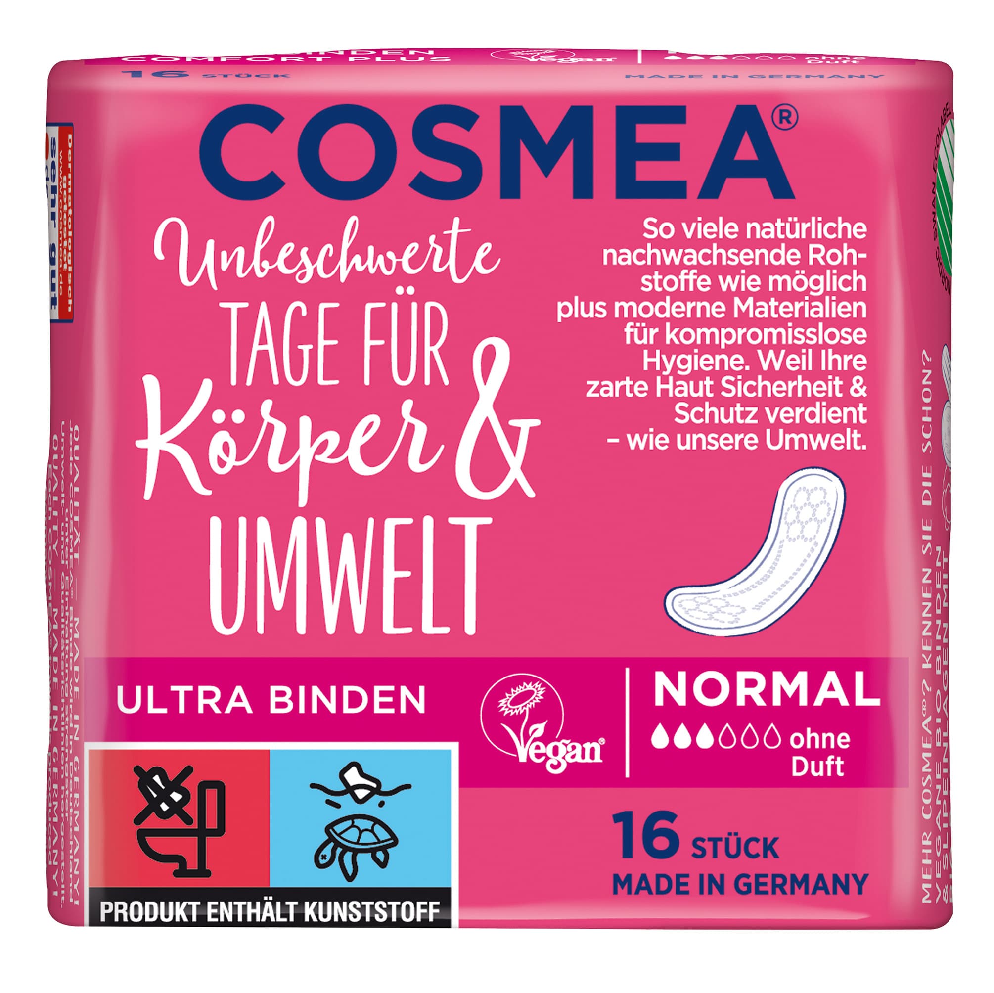 Cosmea® Comfort Plus Ultra Binden, Geruchsschutz, Normal, 16 Stück1,59 € / 16 Stk.0,99 € / 10 Stk.Online verfügbarIn die Filiale lieferbar
