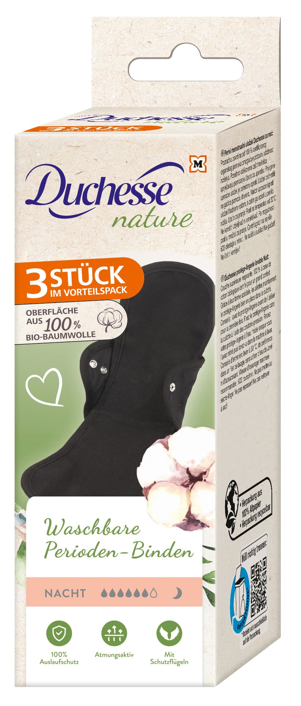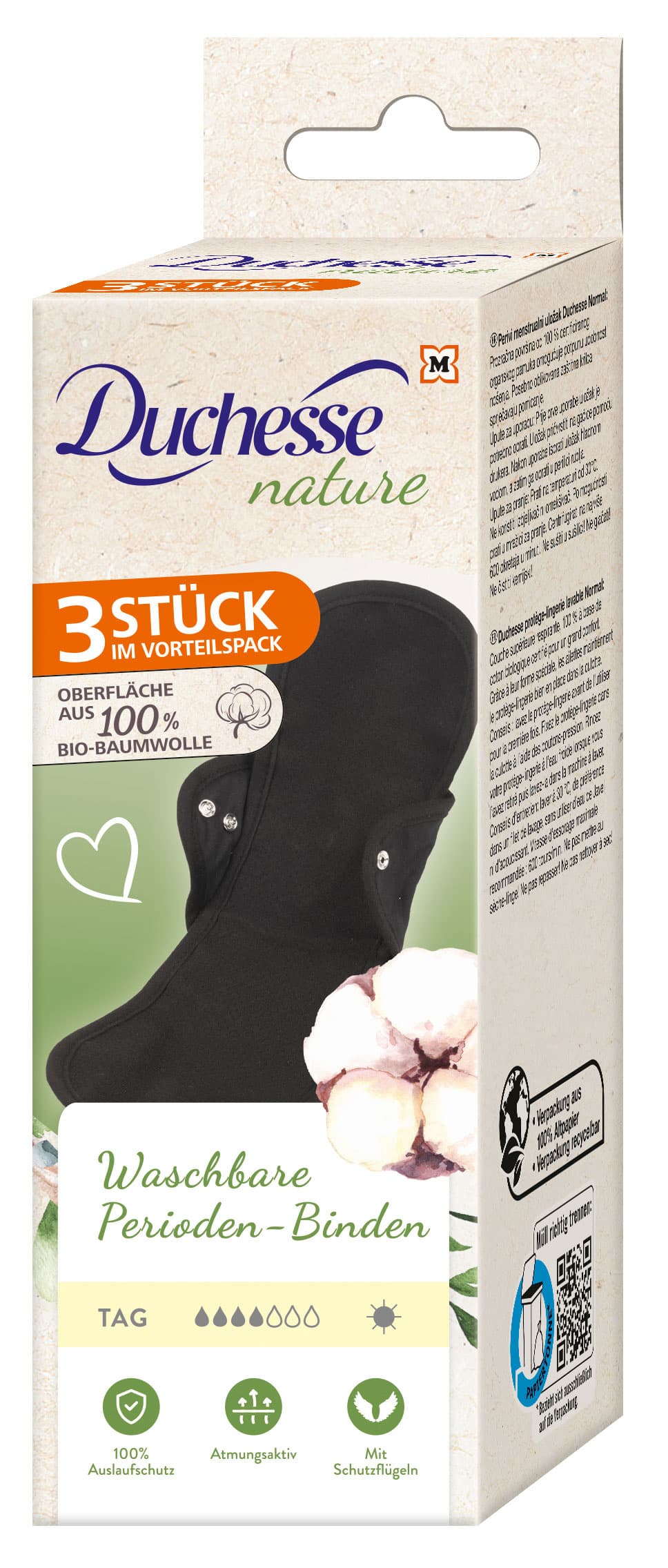 Müller EigenmarkeDuchesse Waschbare Perioden-Binden Tag10,00 € / 3 Stk.33,33 € / 10 Stk.Online verfügbarIn die Filiale lieferbar