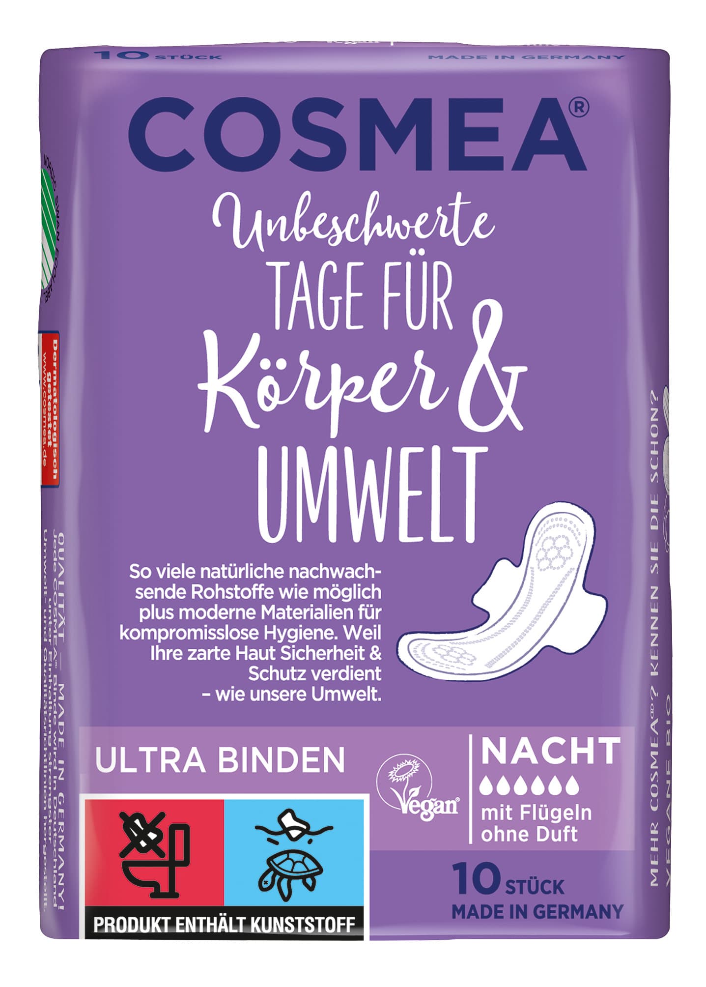 Cosmea® Comfort Plus Ultra Binden, Geruchsschutz, Nacht mit Flügeln, 10 Stück1,59 € / 10 Stk.1,59 € / 10 Stk.Online verfügbarIn die Filiale lieferbar