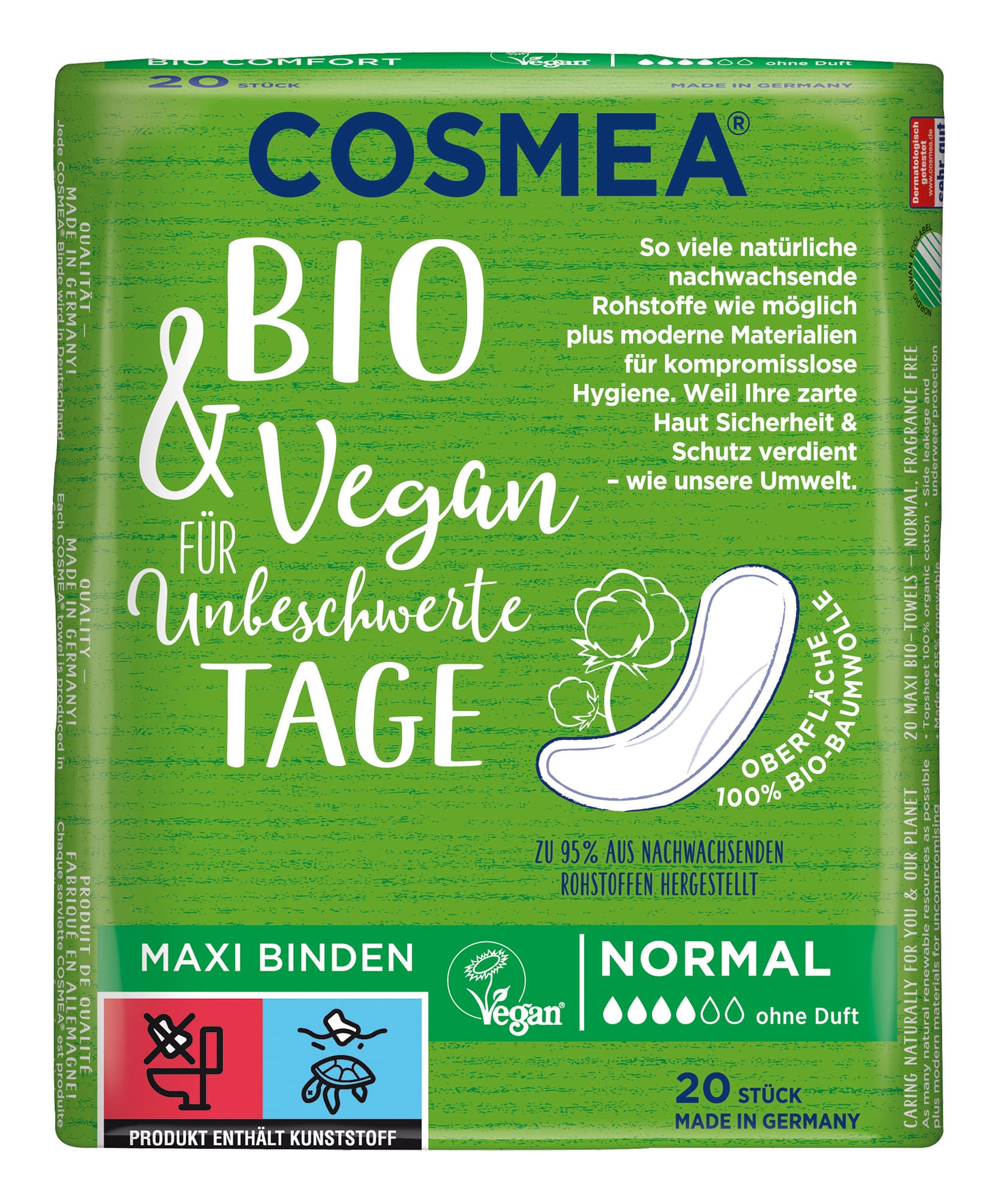 Cosmea® Comfort BIO Maxi Binden, VEGAN, Normal ohne Duft, 20 Stück1,99 € / 20 Stk.1,00 € / 10 Stk.Online verfügbarIn die Filiale lieferbar