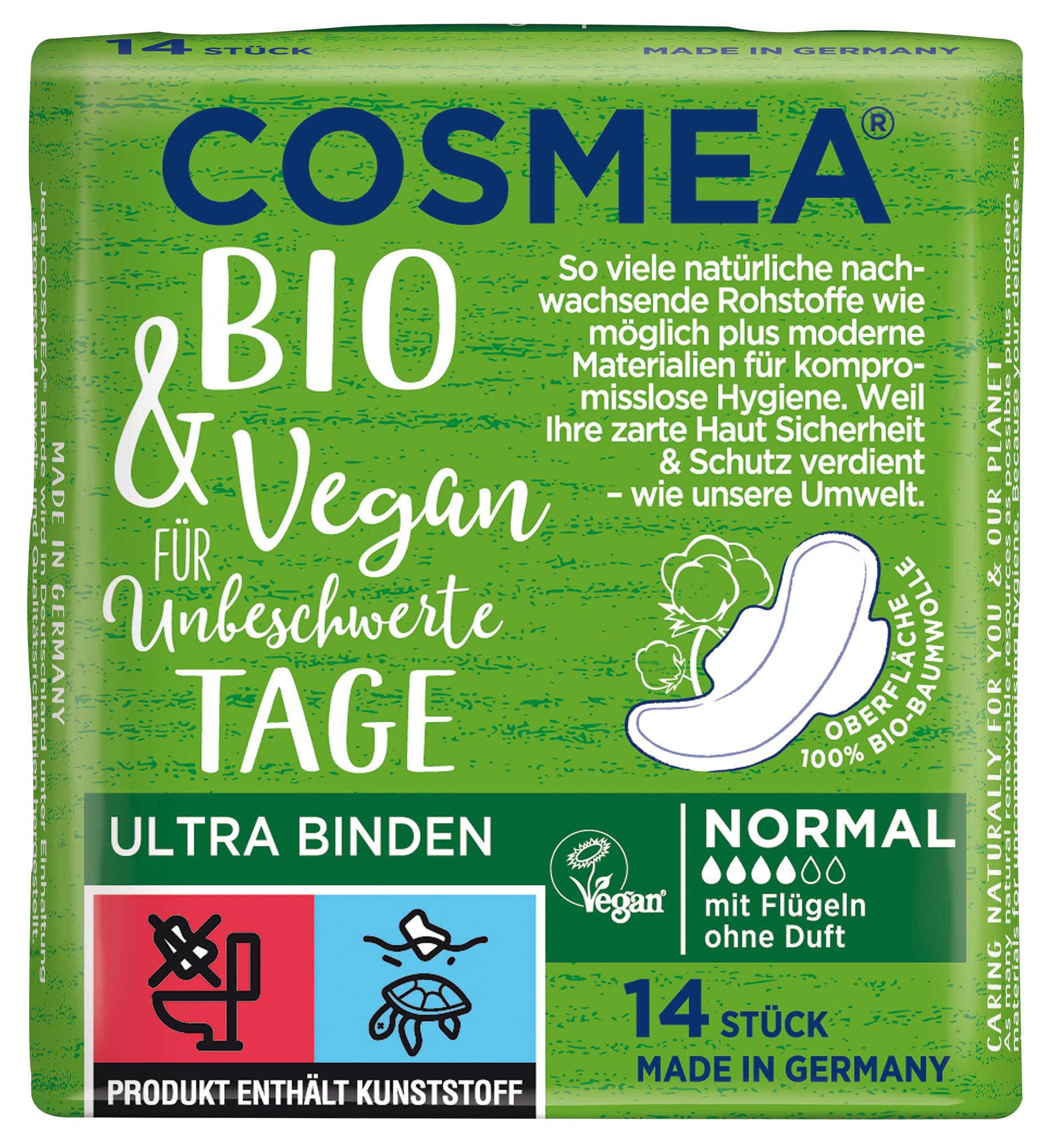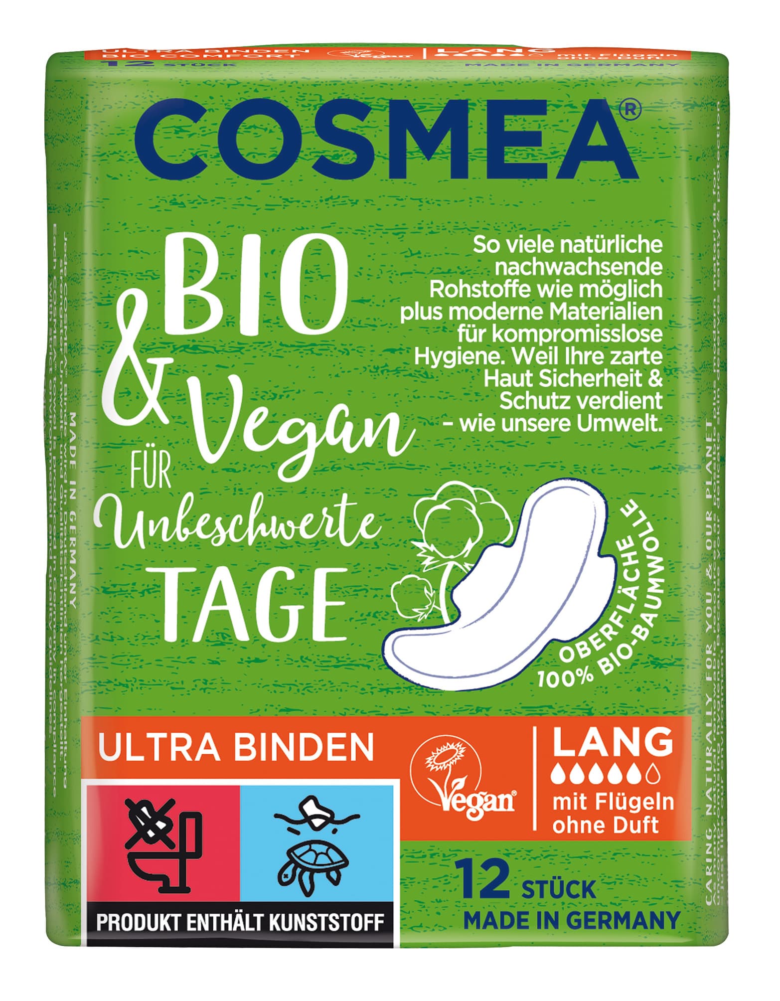 Cosmea® Ultra Binden Bio & Vegan Lang1,99 € / 12 Stk.1,66 € / 10 Stk.Online verfügbarIn die Filiale lieferbar