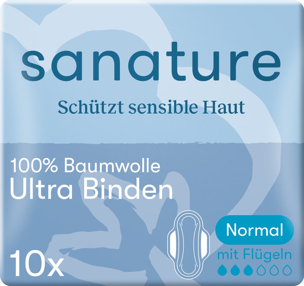 Sanature 100% Baumwolle Ultra Binden Normal mit Flügeln2,95 € / 10 Stk.UVP3,29 €2,95 € / 10 Stk.Online verfügbarIn die Filiale lieferbar