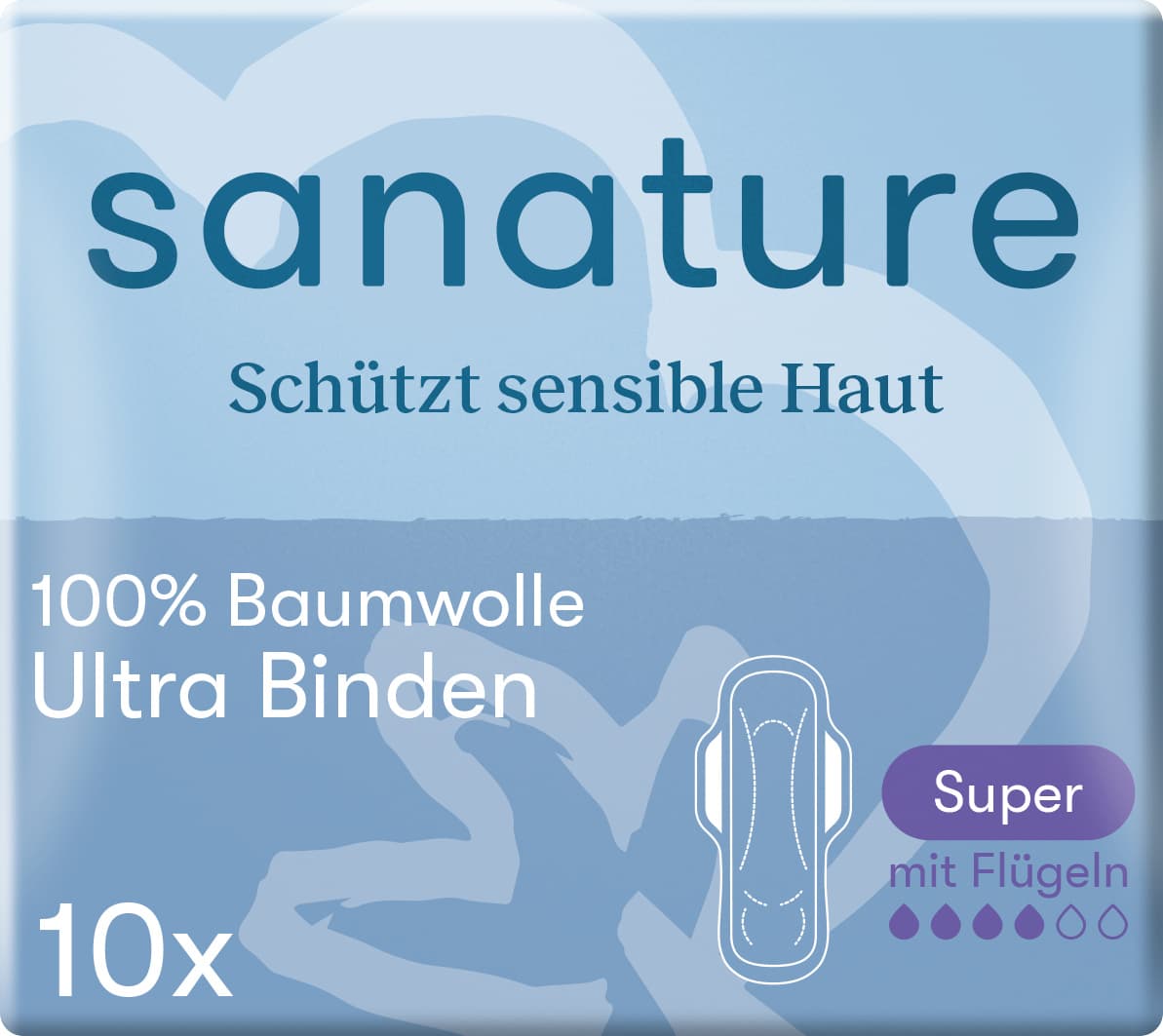 Sanature 100% Baumwolle Ultra Binden Super mit Flügeln2,95 € / 10 Stk.UVP3,29 €2,95 € / 10 Stk.Online verfügbarIn die Filiale lieferbar