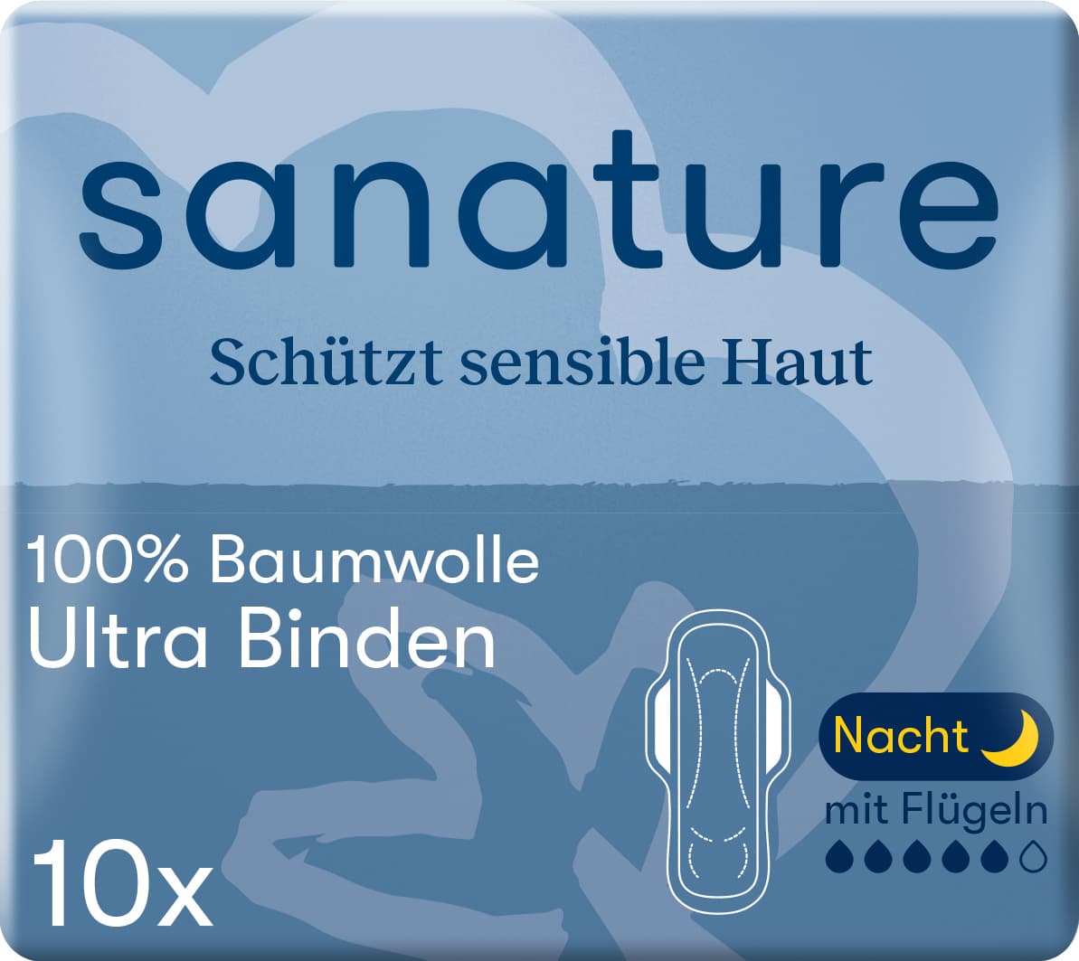 Sanature 100% Baumwolle Ultra Binden Nacht mit Flügeln3,25 € / 10 Stk.3,25 € / 10 Stk.Online verfügbarIn die Filiale lieferbar