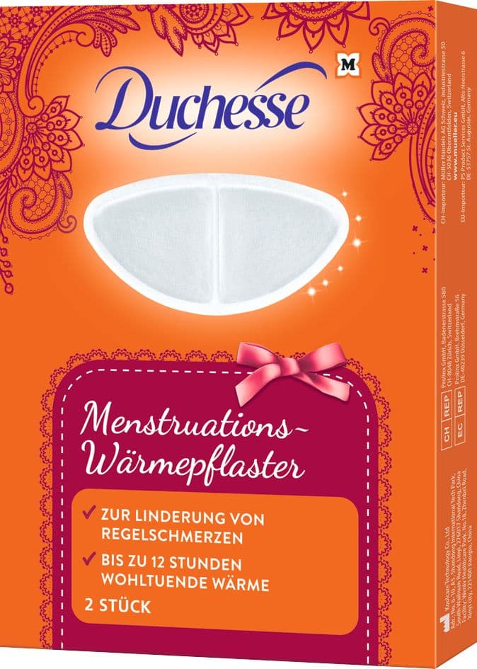 Müller EigenmarkeDuchesse Menstruations-Wärmepflaster4,45 € / 2 Stk.22,25 € / 10 Stk.Online verfügbarIn die Filiale lieferbar