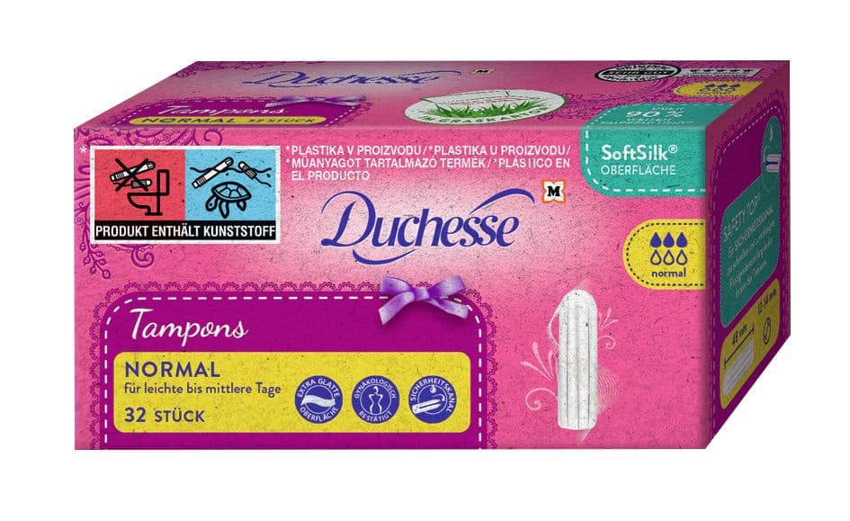 Müller EigenmarkeDuchesse Tampons Normal im Graskarton1,75 € / 32 Stk.0,55 € / 10 Stk.Online verfügbarIn die Filiale lieferbar