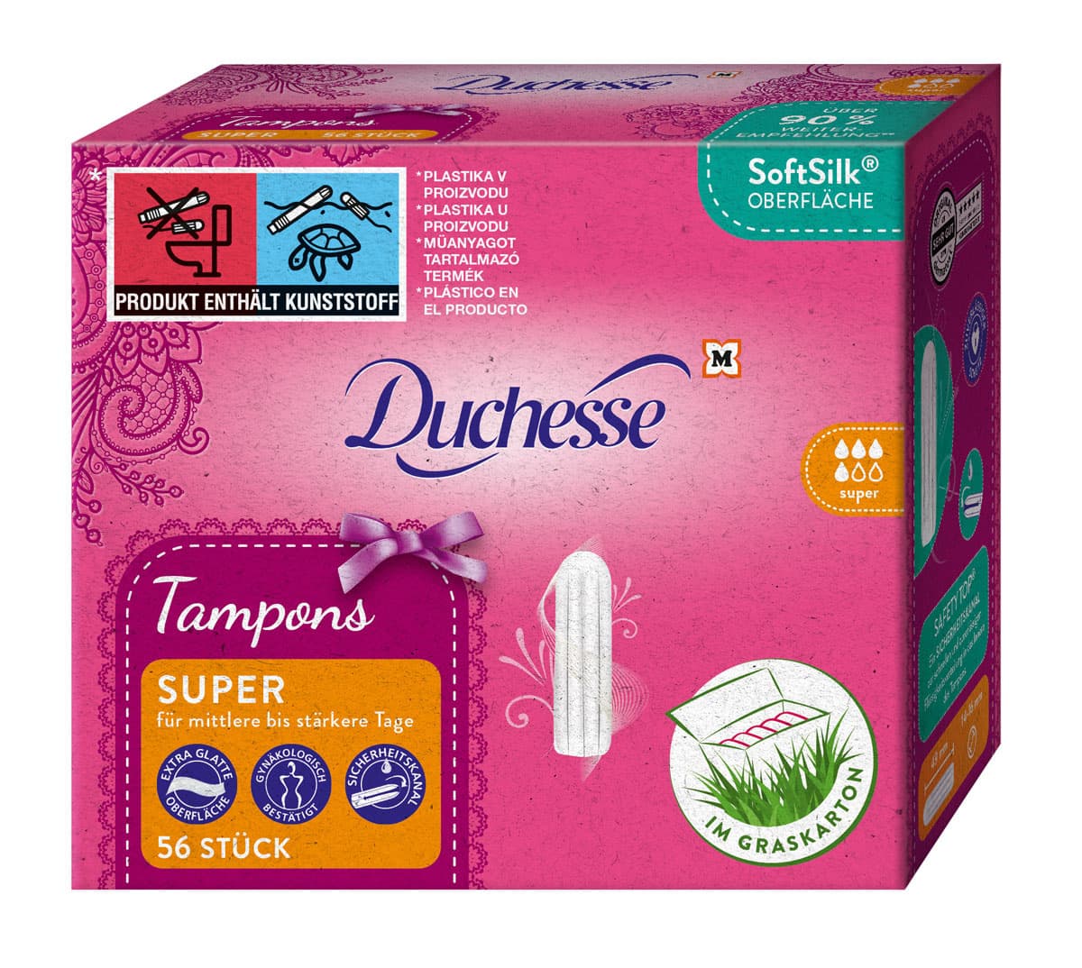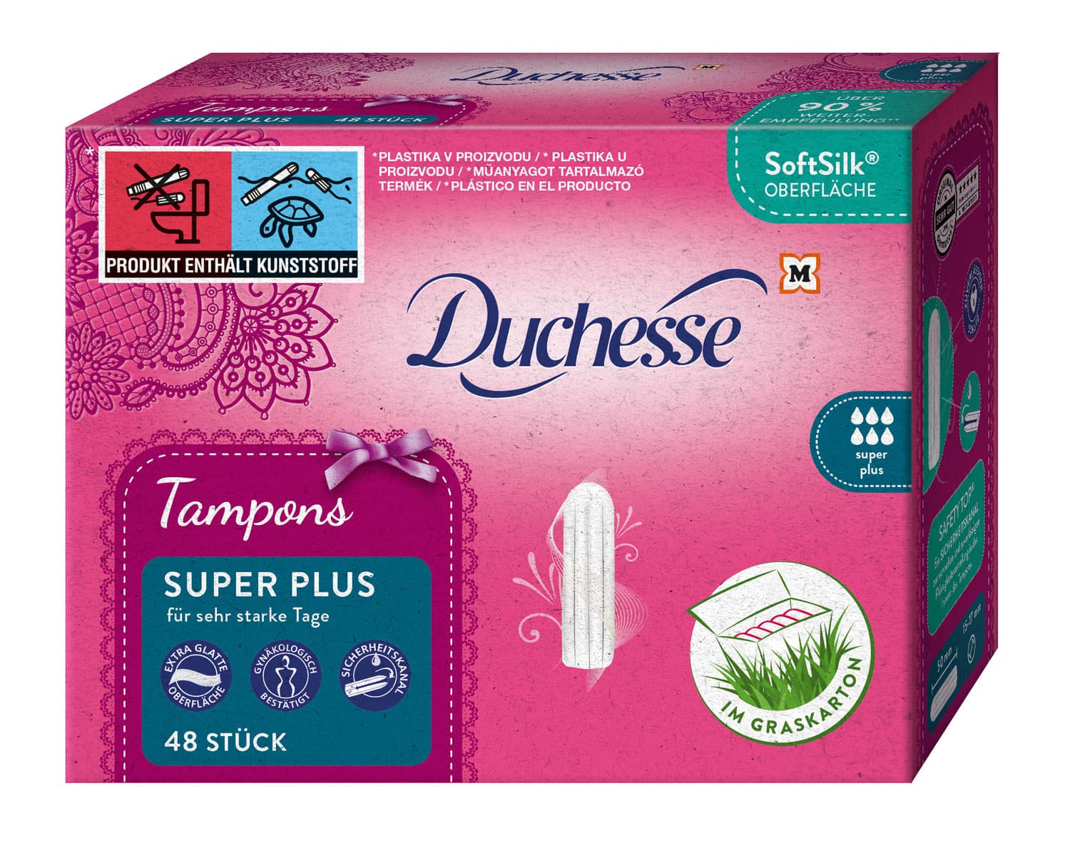 Müller EigenmarkeDuchesse Tampons Super Plus3,95 € / 48 Stk.0,82 € / 10 Stk.Online verfügbarIn die Filiale lieferbar