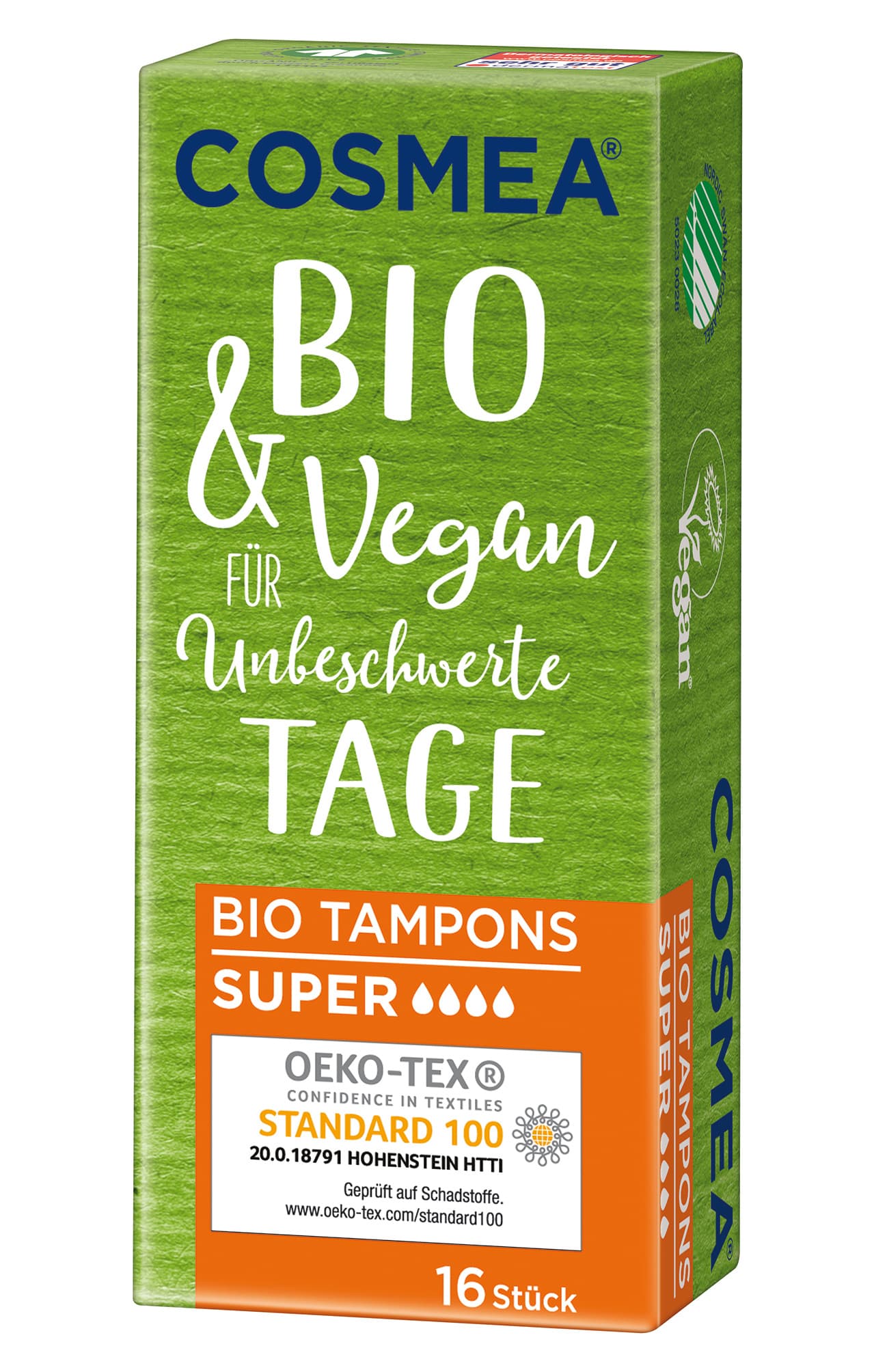 Cosmea® BIO Tampons, VEGAN, Super2,99 € / 16 Stk.1,87 € / 10 Stk.Online verfügbarIn die Filiale lieferbar