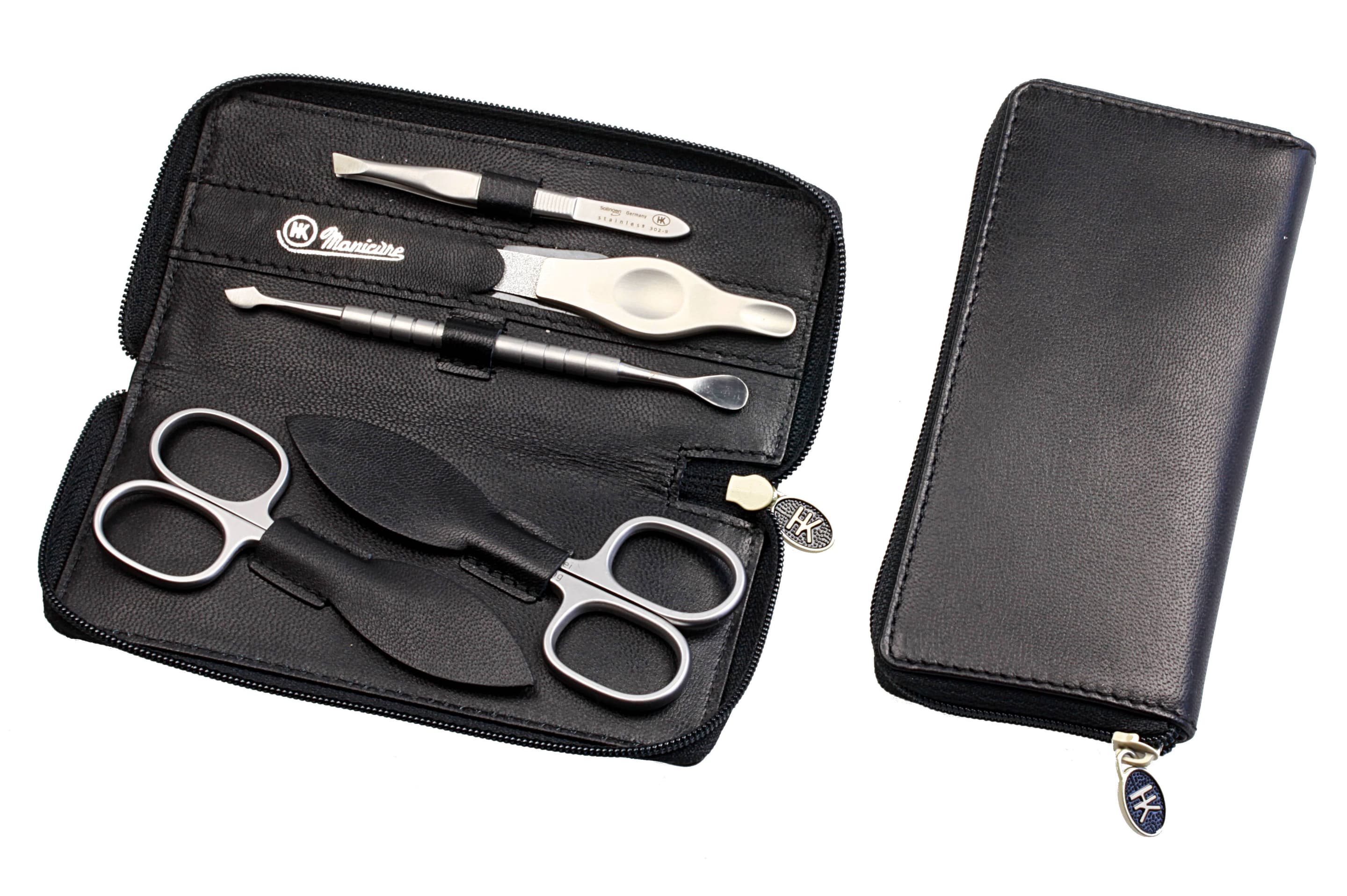 Kniebes Maniküre-Etui Leder 9-teilig schwarz