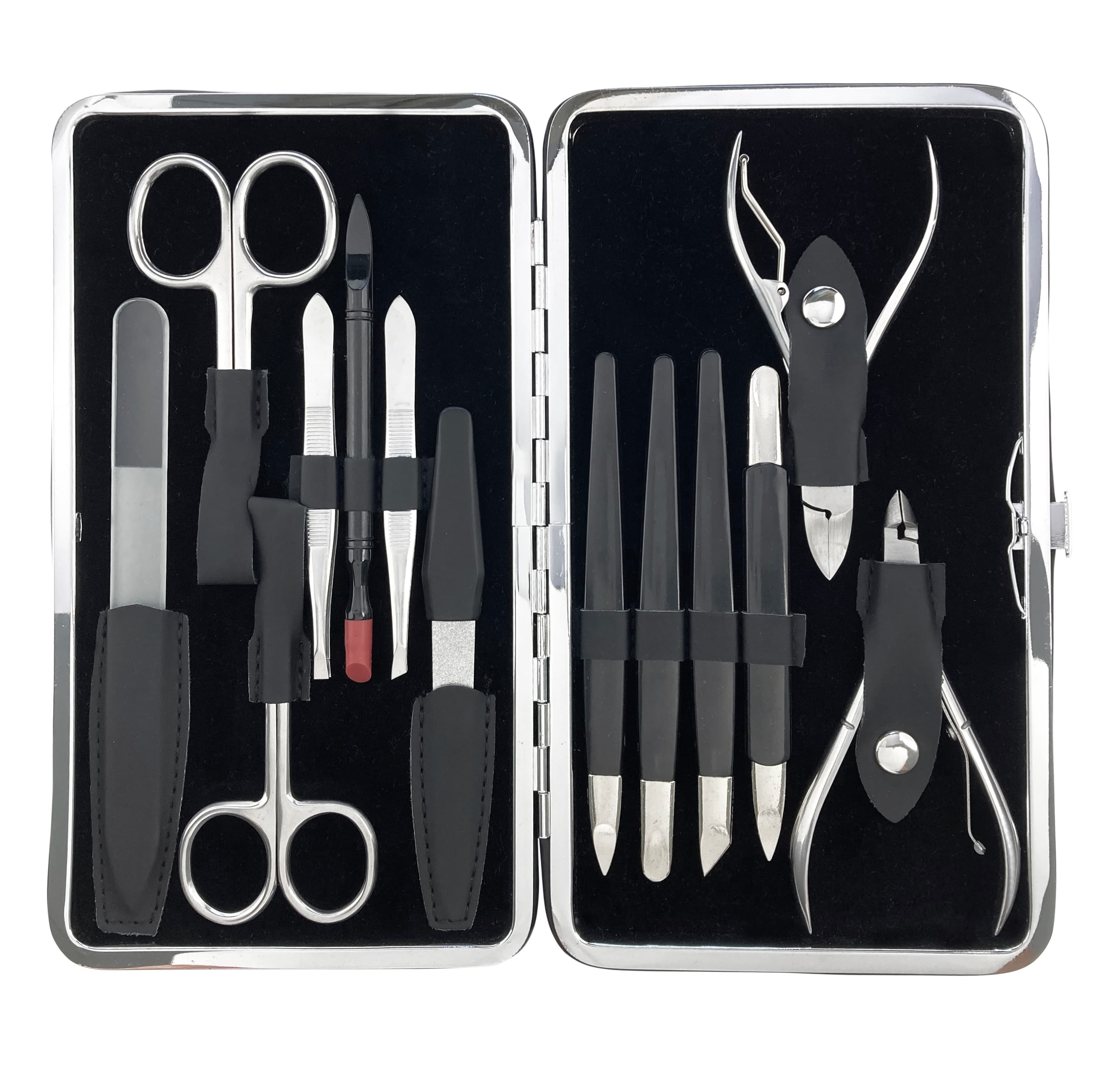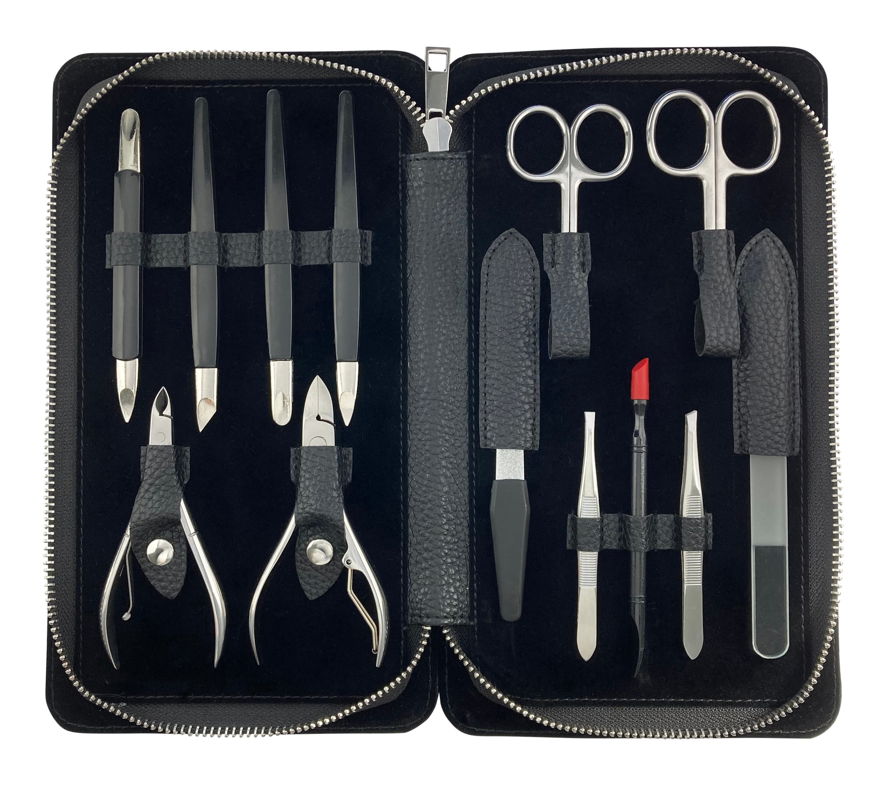 Maniküre Etui mit Reißverschluss, 13-teilig, Schwarz