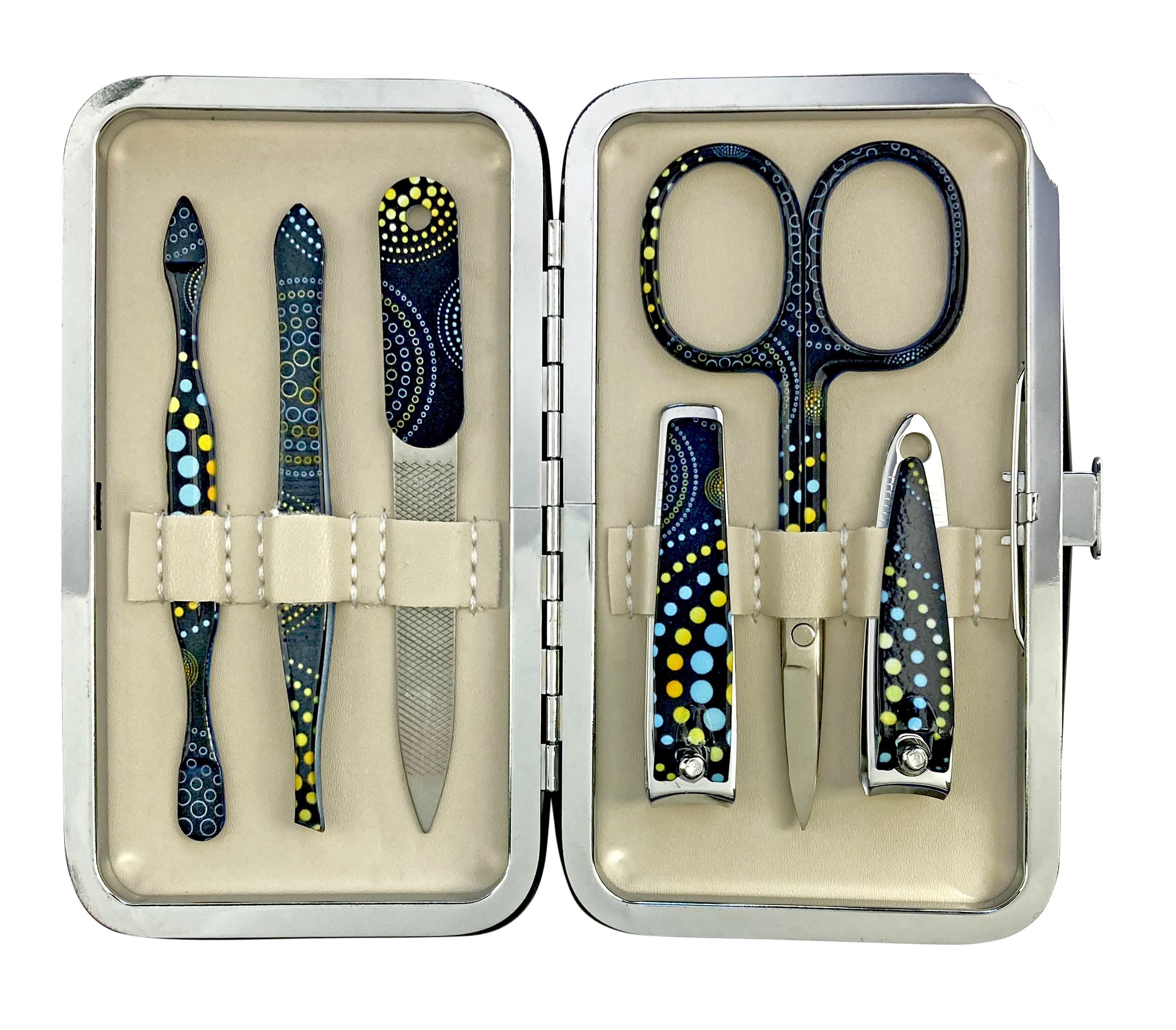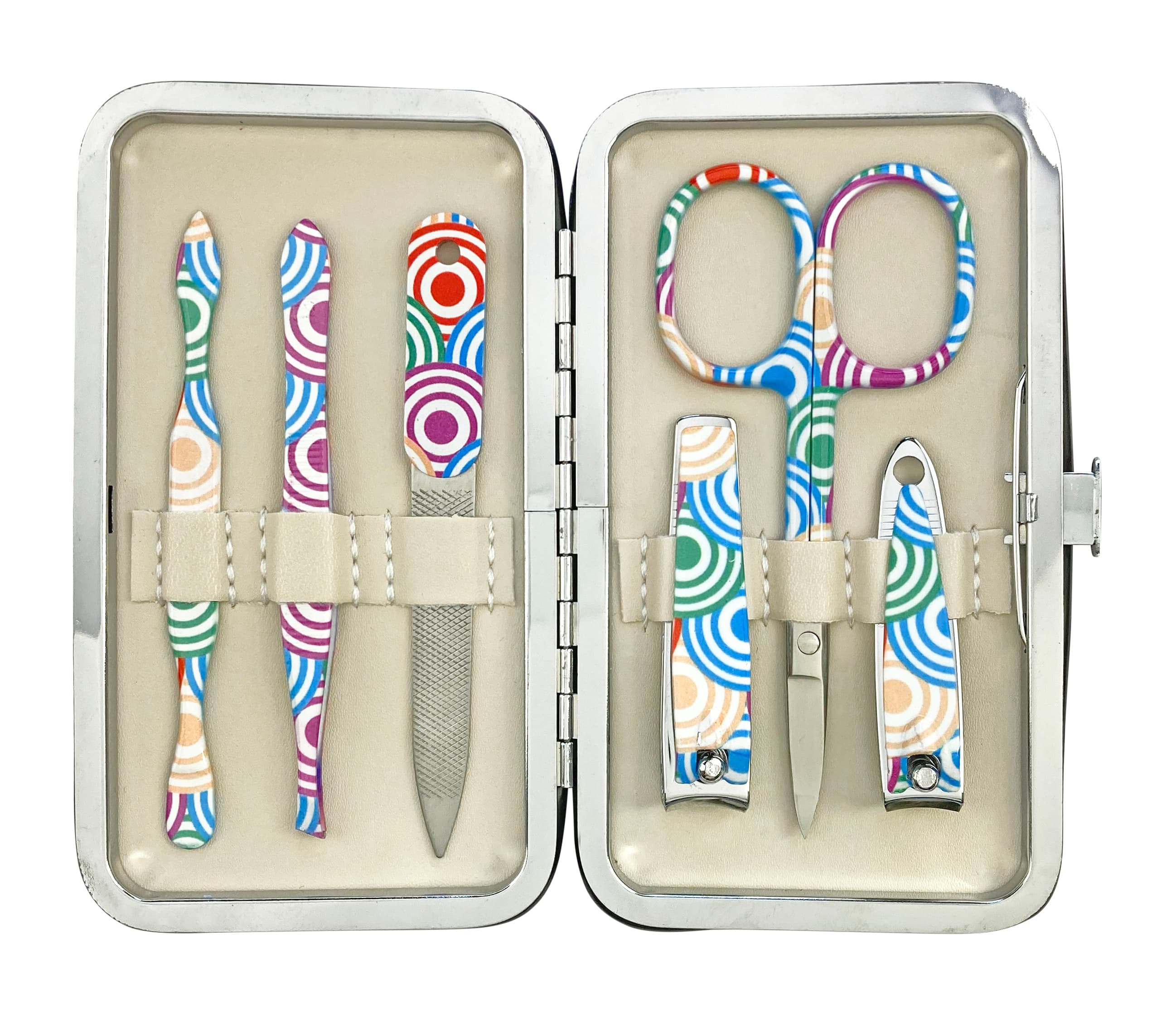 Rahmenmaniküre Etui, 6-teilig, Kreise, Glitzer