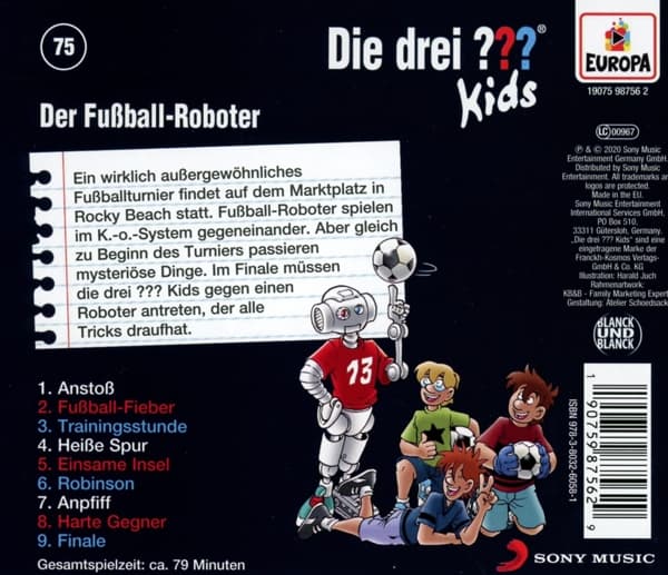 | 1 | Die drei ??? Kids | 075 - Der Fußball-Roboter - 1. Anstoß | 00:13:25 | |