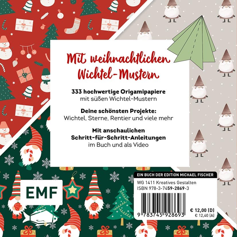 Wunderschöne Origamikunstwerke selber falten – mit Schritt-für-Schritt-Anleitungen und 333 weihnachtlichen Origamipapieren mit Wichtel-Mustern