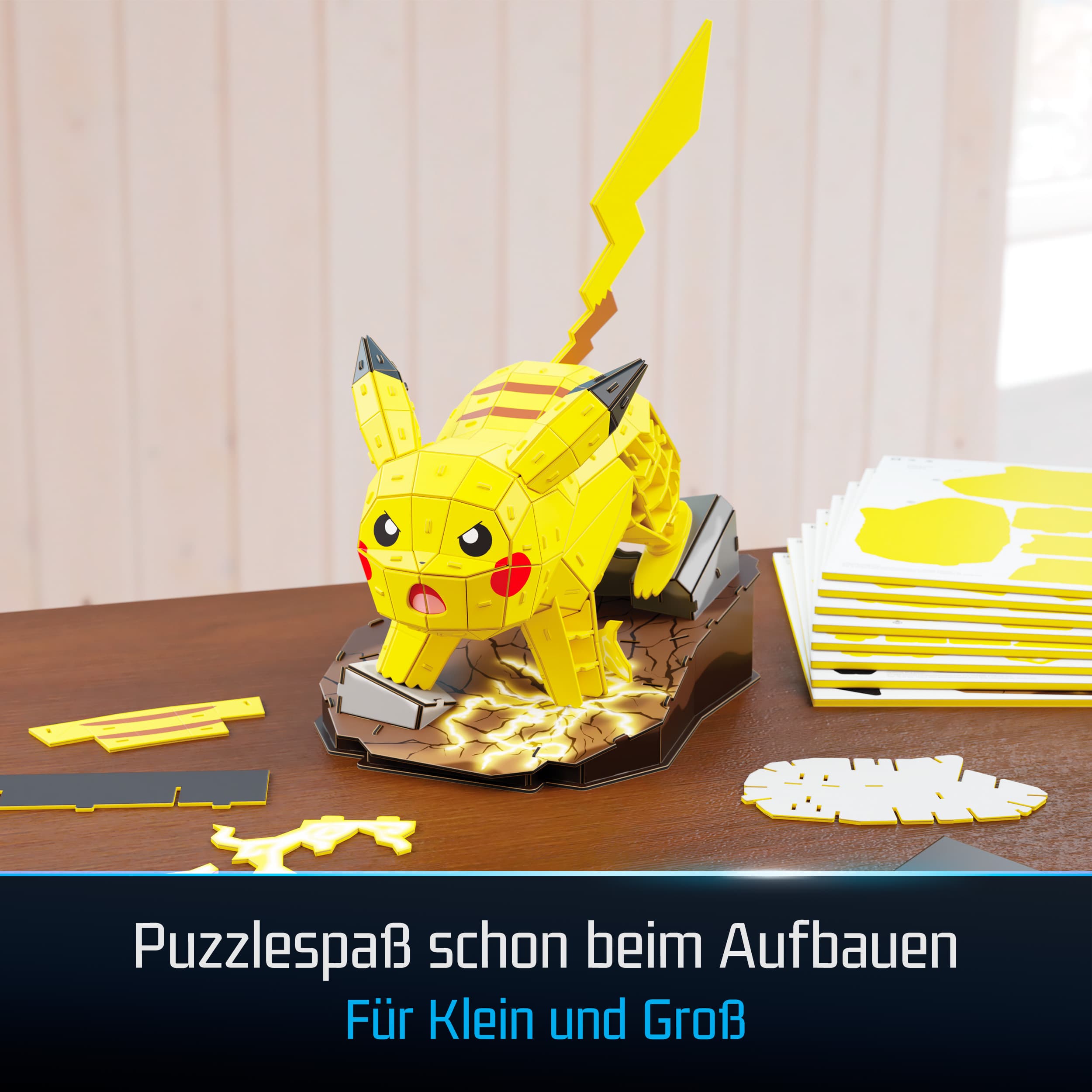 Pikachu, die beliebte Pokémon Figur wird mit diesem 3D-Modellbausatz aus hochwertigem Karton detailreich zum Leben erweckt