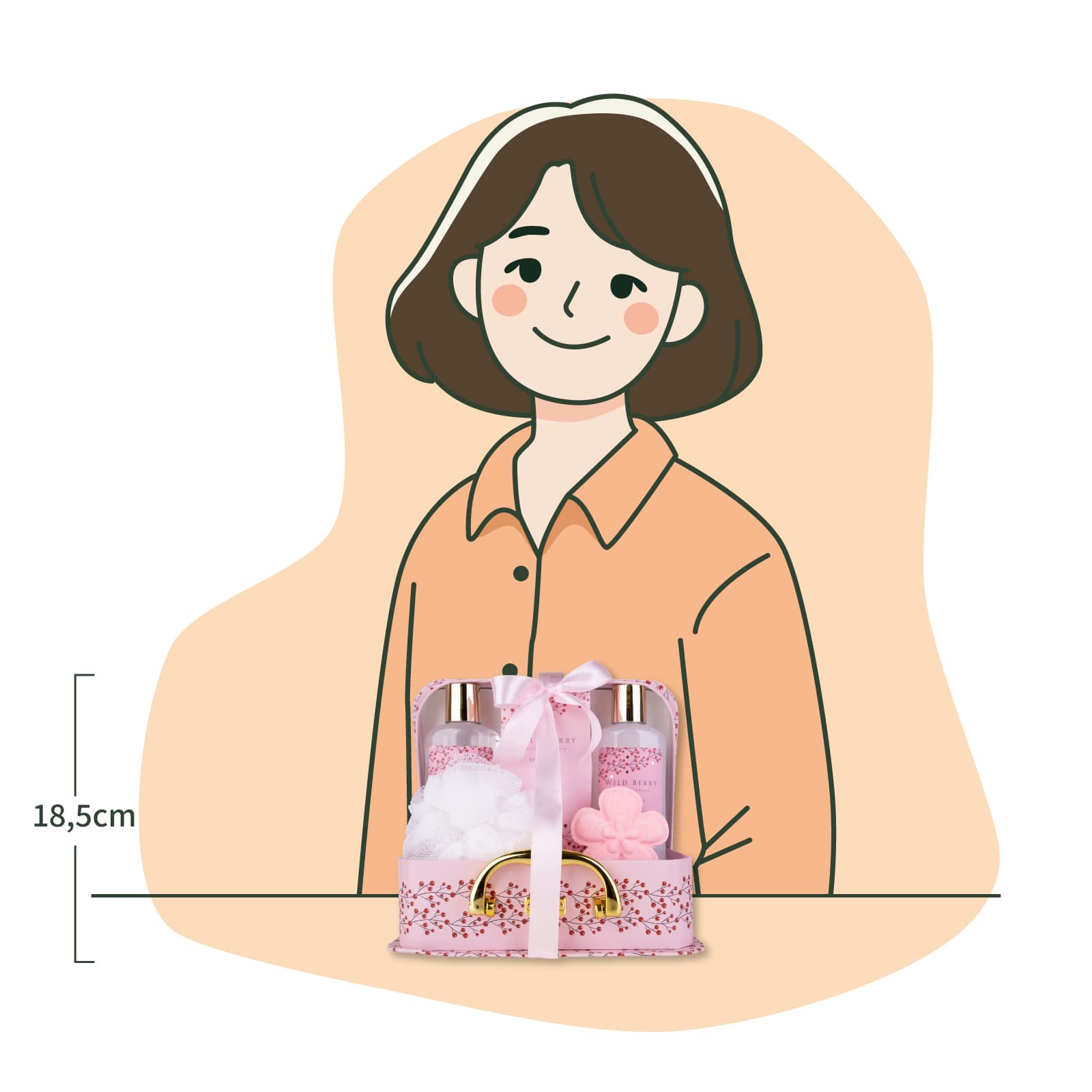 Accentra Badeset Wild Berry in Papierkoffer, Duft: Vanilla& Cranberry, Farbe: pink/gold