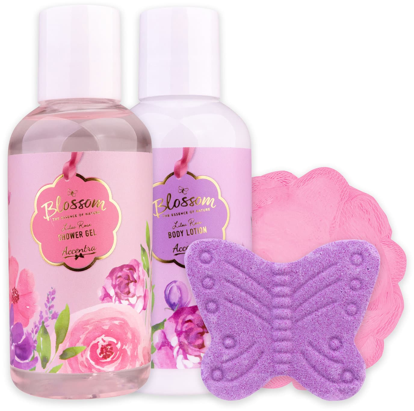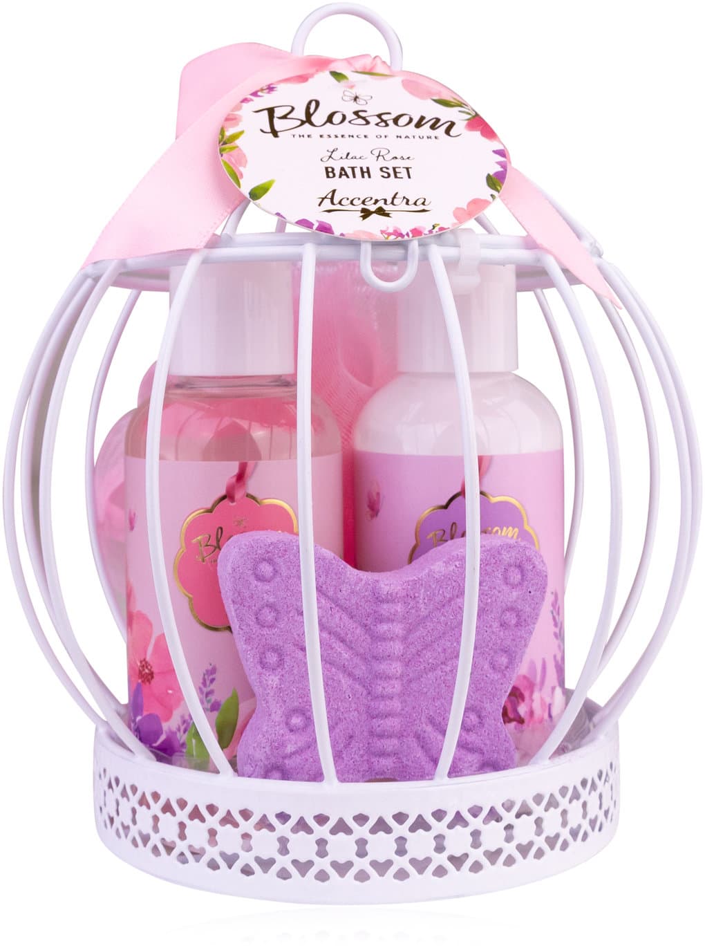 Das Badeset Blossom präsentiert sich in einem dekorativen Vogelkäfig in edlen Rosa-, Lila- und Goldtönen – ein echter Blickfang und eine besondere Geschenkidee. Der zarte Duft Lilac Rose vereint die blumige Frische von Flieder mit der weichen Eleganz der Rose und sorgt für entspannte Wohlfühlmomente im Alltag.
