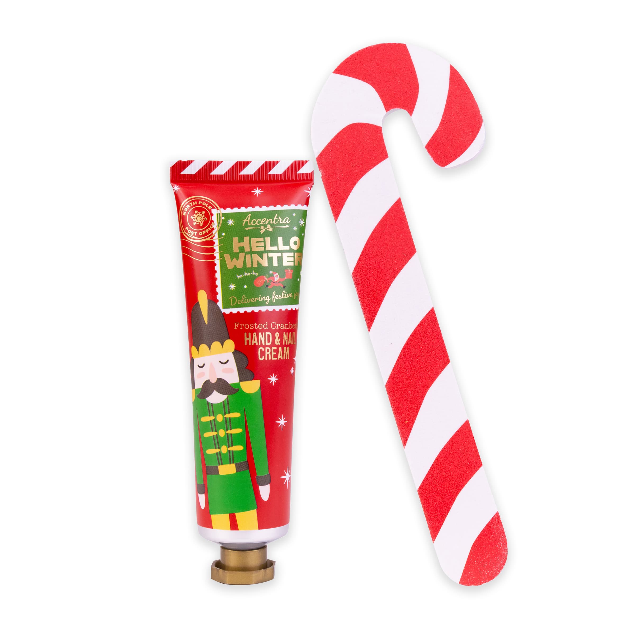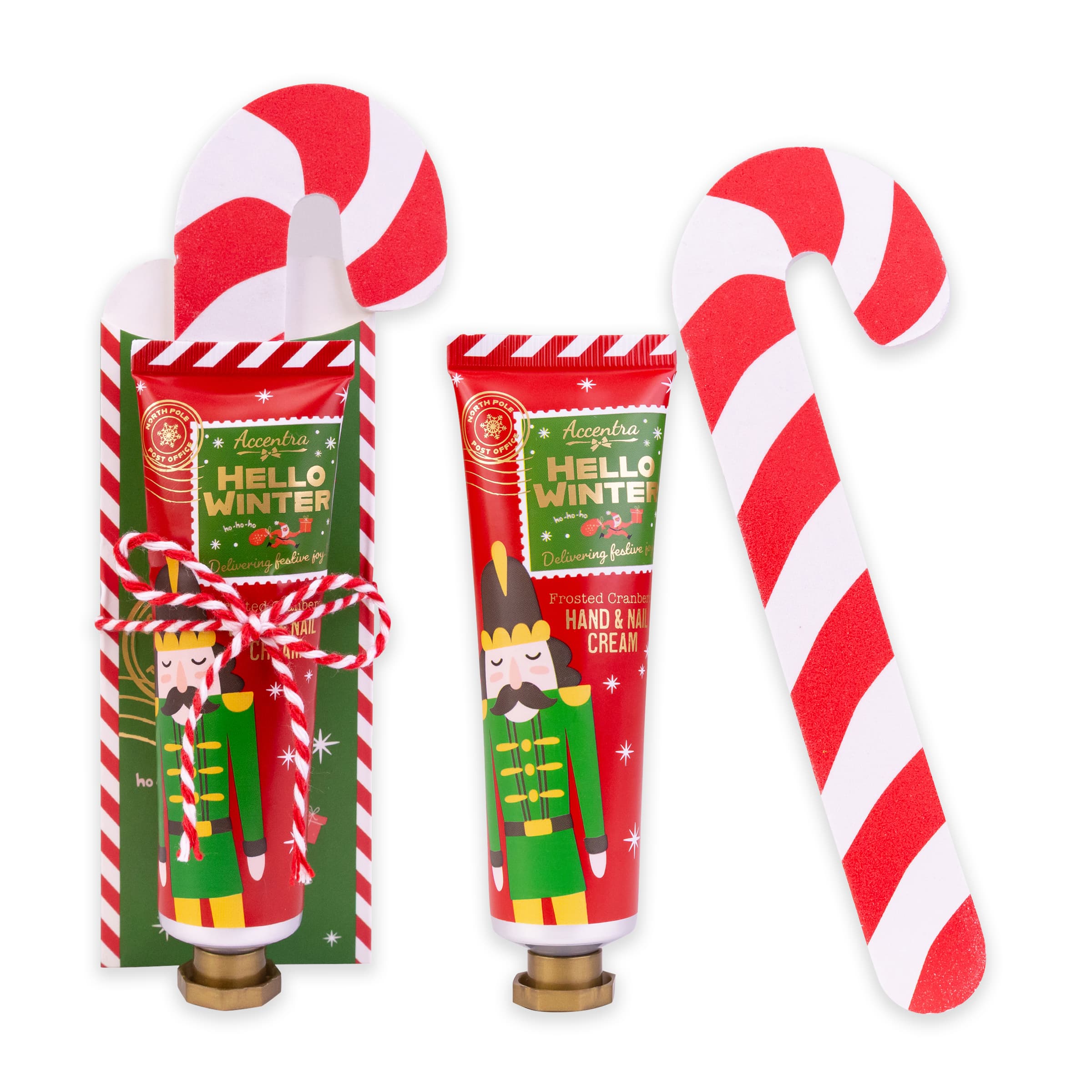Das liebevoll gestaltete Handpflegeset HELLO WINTER in den klassisch weihnachtlichen Farben Rot, Grün und Gold enthält eine 30ml Hand- und Nagelcreme mit herrlich frischem Duft nach Frosted Cranberry sowie eine hübsche Nagelfeile im Zuckerstangen-Design. Das Set eignet sich hervorragend als kleine Aufmerksamkeit in der Weihnachtszeit.