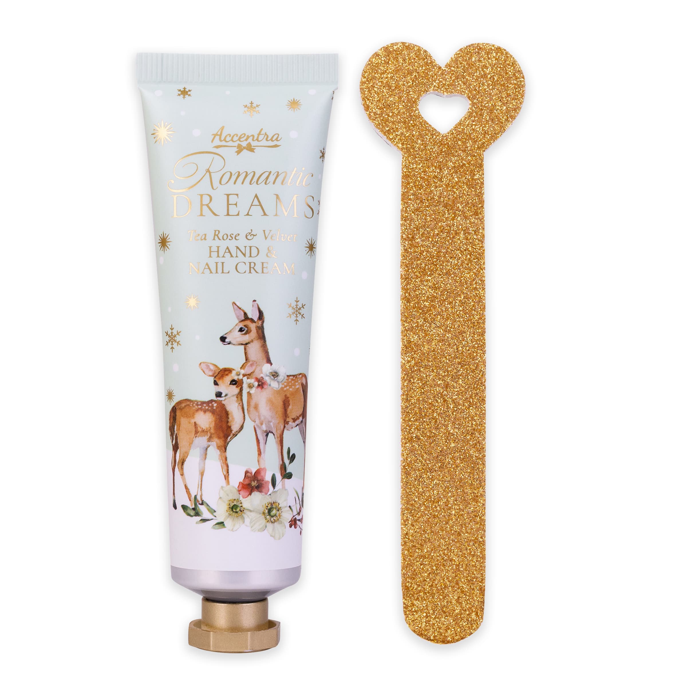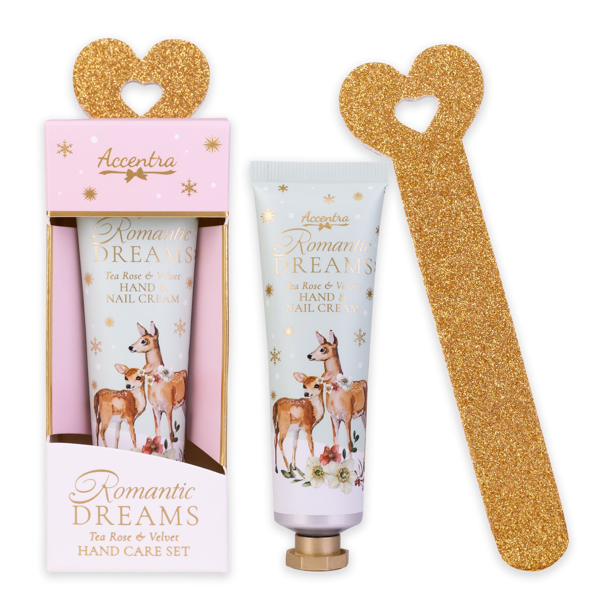 Das 2-teilige Handpflegeset ROMANTIC DREAMS begeistert mit seiner geschmackvollen Geschenkverpackung. Perfekt als kleines Geschenk oder Mitbringsel! Mit dem Duft nach Tea Rose & Velvet. Harmonische Farbgestaltung in Pastell rosa/grün und Gold.