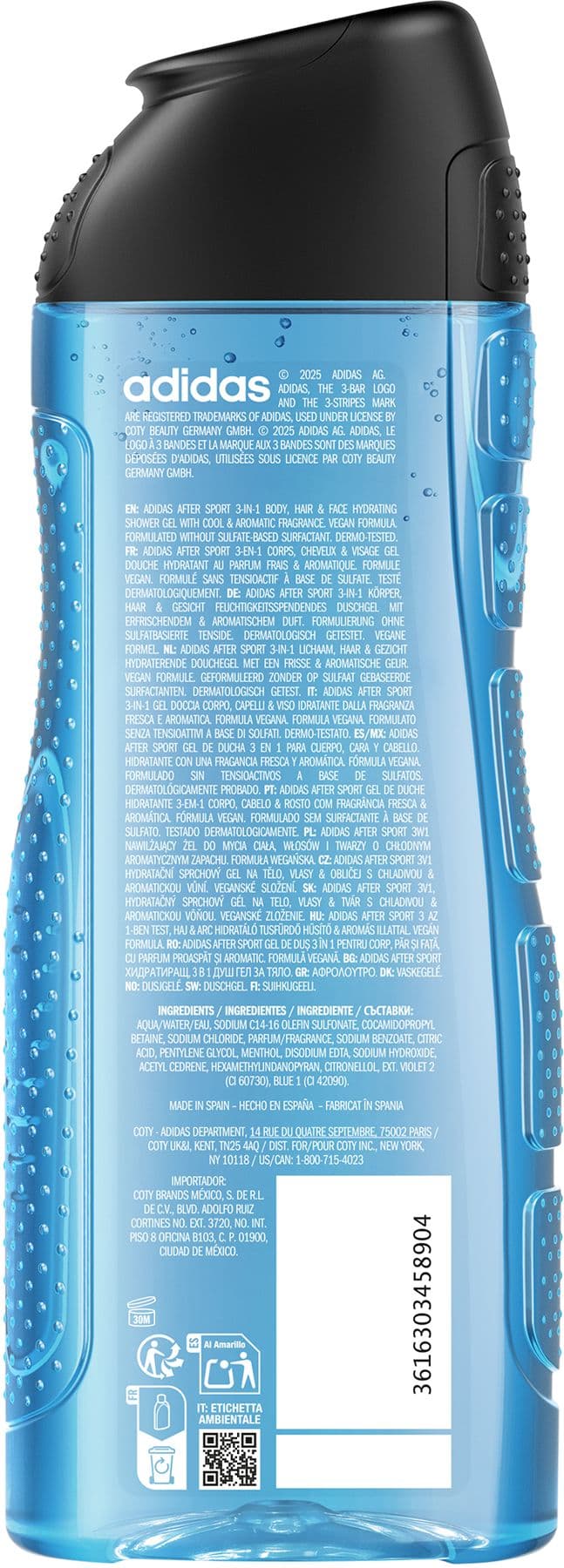 Das aromatisch-frische adidas 3in1 After Sport Duschgel für ihn enthält zitrische Duftnoten die nach dem Sport beleben und erfrischen. Die feuchtigkeitsspendende 3in1-Formel pflegt Körper, Haar und Gesicht und die Formulierung ist zudem dermatologisch getestet und vegan. Auch die Verpackungüberzeugt nun mit einer zu 100 Prozent recycelten Flasche (ausgenommen Additive, Kappe und Etikett).