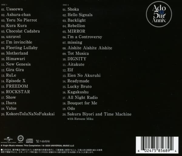 | 20 | Ado / Miku Hatsune | Sakura Biyori and Time Machine | 00:05:32 |