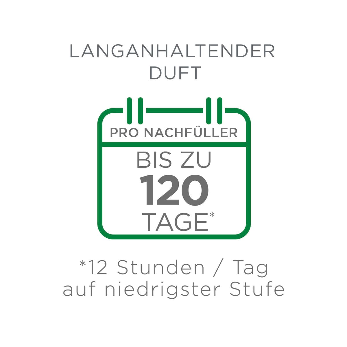 • ein kontinuierliches Dufterlebnis für die Steckdose mit bis zu 120 Tage Duft pro Nachfüller