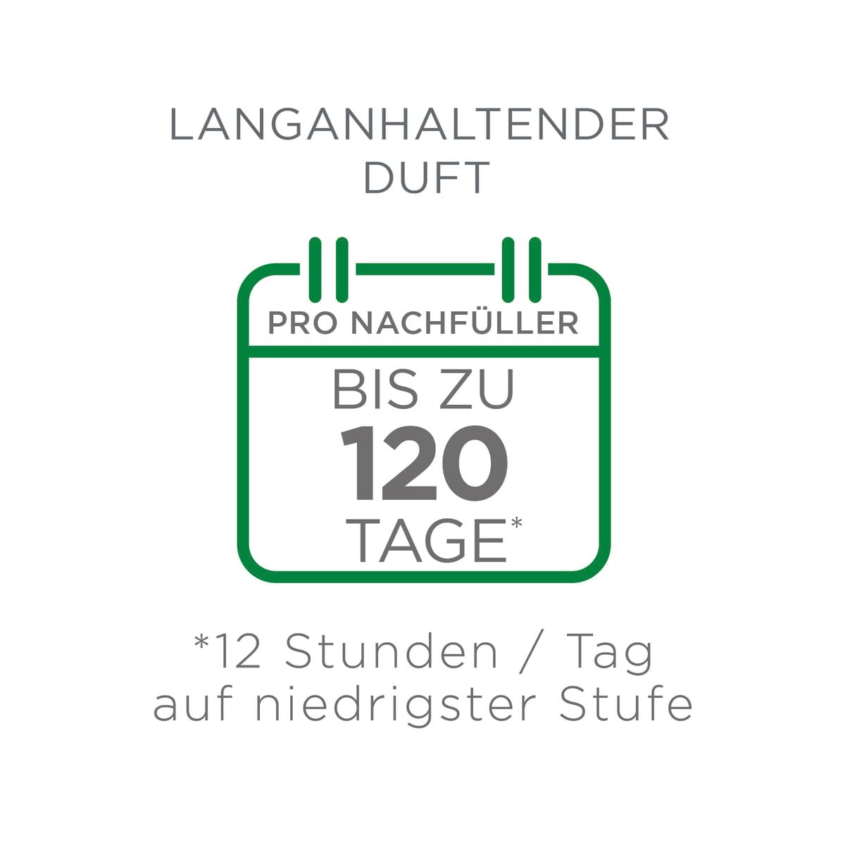 - ein kontinuierliches Dufterlebnis für die Steckdose mit bis zu 120 Tage Duft pro Nachfüller