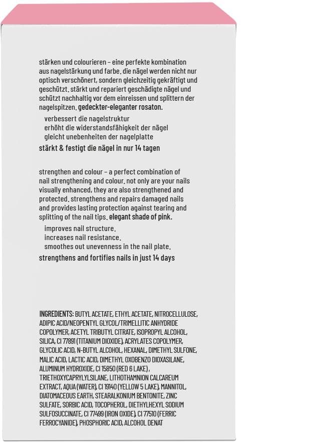 Stärkende Nagelpflege. Unser nail express hardnener stärkt brüchige und weiche Nägel, verbessert die Nagelstruktur und gleicht Unebenheiten aus. Er fördert die Widerstandsfähigkeit der Nägel innerhalb von 2 Wochen und sorgt für eine glatte, gleichmäßige Oberfläche. Mit einem transparent glänzenden finish.