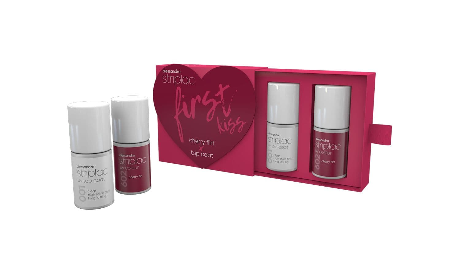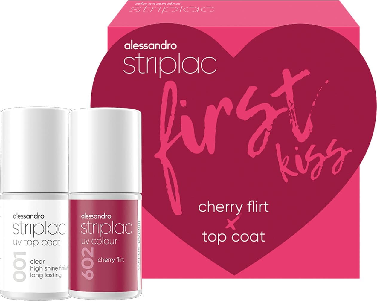 Das alessandro Striplac First Kiss Geschenkset bietet alles für eine ausdrucksstarke Maniküre mit einem glänzenden Finish. Der hochpigmentierte UV-Nagellack in der Farbe Cherry Flirt verleiht den Nägeln einen intensiven, kirschigen Beerenton mit warmen Untertönen.