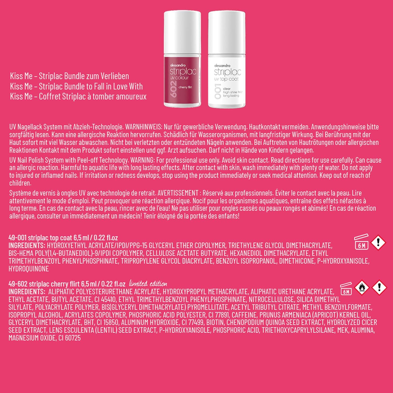 Die verbesserte Formel des Farblacks ist mit veganem Keratin, Biotin und Koffein angereichert. Dank der optimierten Viskosität lässt sich der Lack mit dem Pinsel in Profi-Qualität ebenmäßig auftragen und überzeugt durch eine hohe Deckkraft. Der Striplac Top Coat versiegelt die Farbe und sorgt für ein stoßfestes, langanhaltendes Ergebnis. Je nach Beschaffenheit des Naturnagels kann die Maniküre bis zu 15 Tage halten, ohne abzusplittern oder zu zerkratzen. Die Entfernung ist acetonfrei mit einem Peel-Off-Remover möglich. Verpackt in einer charmanten Geschenkbox eignet sich das Set ideal als Aufmerksamkeit für besondere Anlässe.
