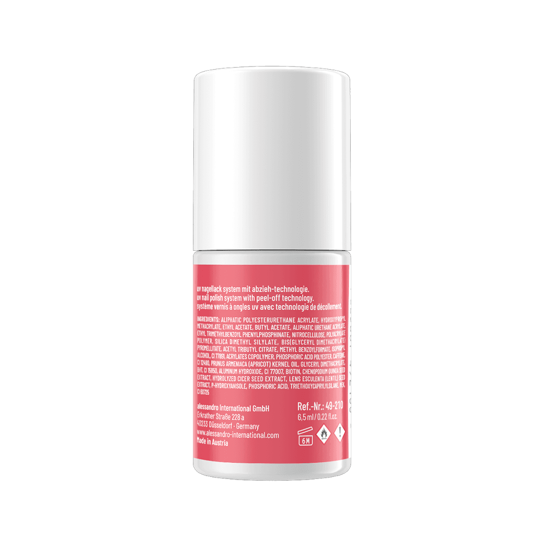 - acetonfreie Ablösung möglich mit Peel Off Remover / bei stärkerer Haftung empfehlen wir den Uv Polish Remover in Kombination mit den Uv Polish Remover Clips
