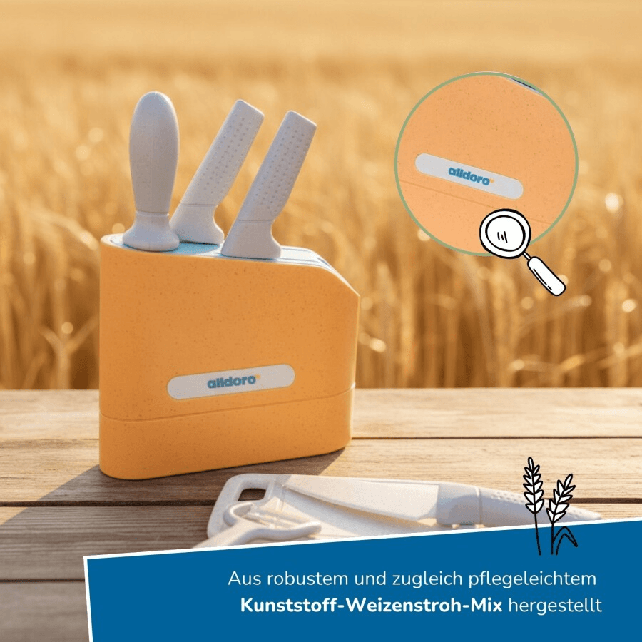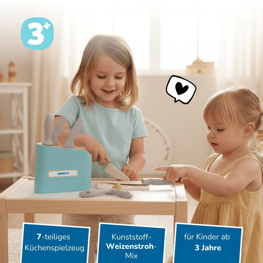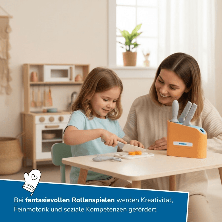 alldoro Messerblock Kinderküche – Spielzeug‑Messerblock mit Zubehör für Kinder‑Spielküche