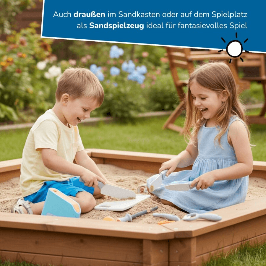 Achtung! Nicht für Kinder unter 3 Jahren geeignet. Erstickungsgefahr durch Kleinteile. Nur unter Aufsicht von Erwachsenen verwenden. Kein echtes Schneidwerkzeug – Spielzeug ohne Schneidfunktion.