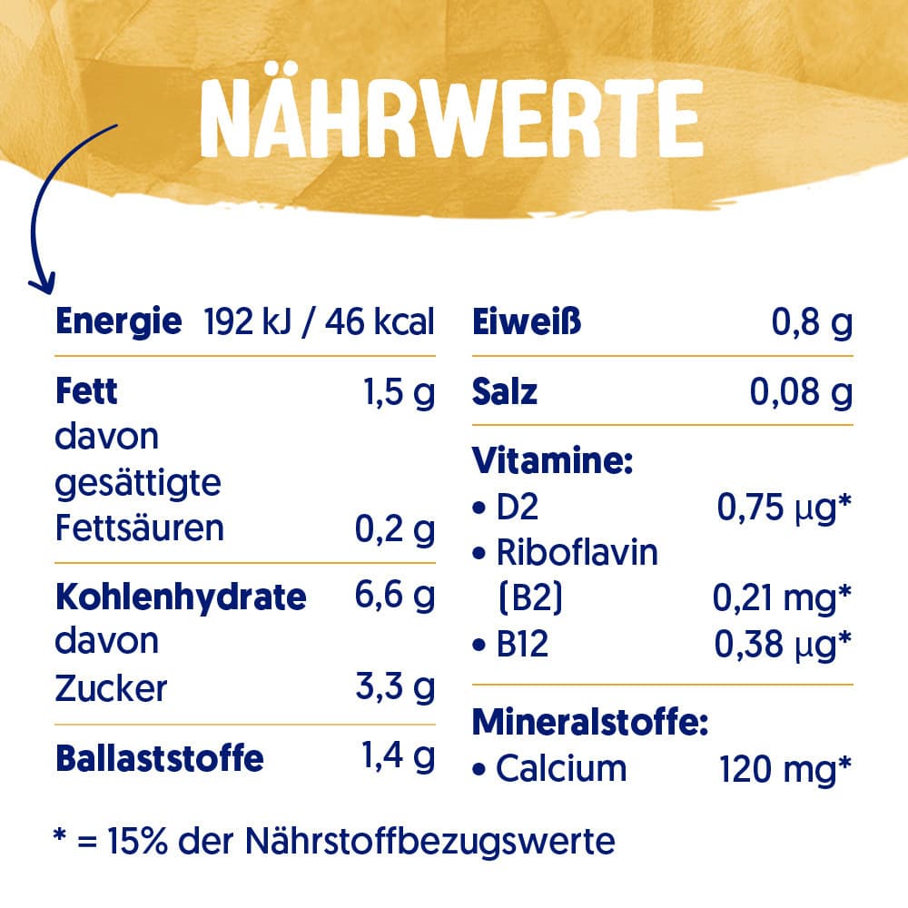 Wir alle sind unterschiedlich. Wir haben verschiedene Geschmäcker, Vorlieben, Ess-&Lebensgewohnheiten. Manche bevorzugen Hafer statt Soja. Egal, wie oder wann du Alpro genießt, wir möchten, dass du feierst, was dich ausmacht.Vom Haferdrink, der dich zum Barista macht, bis zum Proteindrink, der den Highperformer aus dir rausholt. Du entscheidest, wer du sein willst und wir unterstützen dich dabei! Lust auf eine kleine Zeitreise? Dann probier doch mal This is not M*LK Schokoladengeschmack. Schmeckt wie früher auf dem Pausenhof, nur im hier&jetzt und pflanzlich!Du der pflanzliche Held - wir der Side-kick an deiner Seite.Sieh an, hier kommt unser Haferdrink! Der hat ungemein viel Pflanzenkraft und auch noch diese super praktischen Ballaststoffe im Gepäck. Also kannst Du Dich beruhigt in seinen zarten, sanften, bezaubernden Geschmack verlieben. Unser Haferdrink schmeckt einfach echt stark. Und das ganz und gar ohne dass wir Zucker reingetan hätten*!*Ohne Zuckerzusatz, enthält von Natur aus Zucker,MIT CALCIUM UND VITAMIN D2Mit Calcium und Vitamin D2, die zur Erhaltung der Knochen beitragen. Reich an wertvollen BALLASTSTOFFEN. Außerdem ohne Zuckerzusatz!*100% EUROPÄISCHER HAFERBALLASTSTOFFREICH MIT CALCIUM&VITAMIN D2PFLANZLICH SANFT&CREMIGSUPER CREMIGER Haferdrink. Rund im Geschmack und unglaublich lecker. Einfach unschlagbar.HAFER FOR EVER!Ein echter Teamplayer. Ob im Cappuccino, Gebäck oder zum Müsli - Hafer ist der PERFEKTE PARTNER für alles, was dir schmeckt. Mehr Rezepte auf alpro.comMEHR INFOS ZUM NUTRI-SCORE UNTER alpro.com/nutri-score