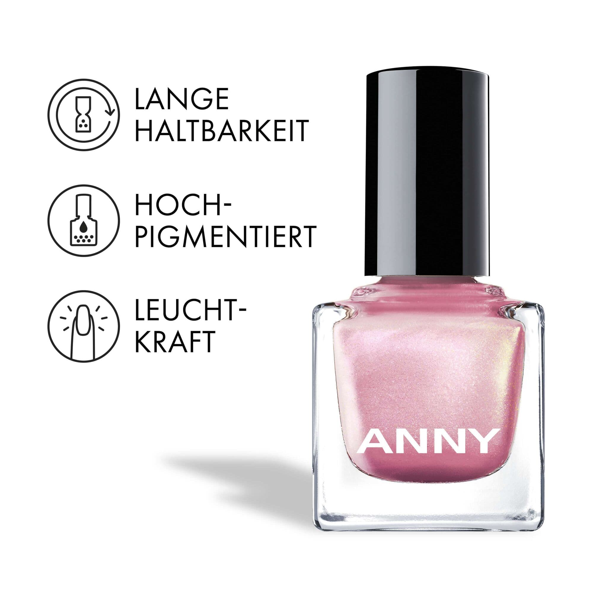 Der ANNY Nail Polish enthält das speziell entwickelte Expert-Gel 1. Dieser Nagellack bildet einen Schutzfilm, der die Deckkraft des Lackes erhöht. Hochwertige Harze verleihen ihm langanhaltenden Glanz, die Textur ist splitterresitent und schnell trocknend.