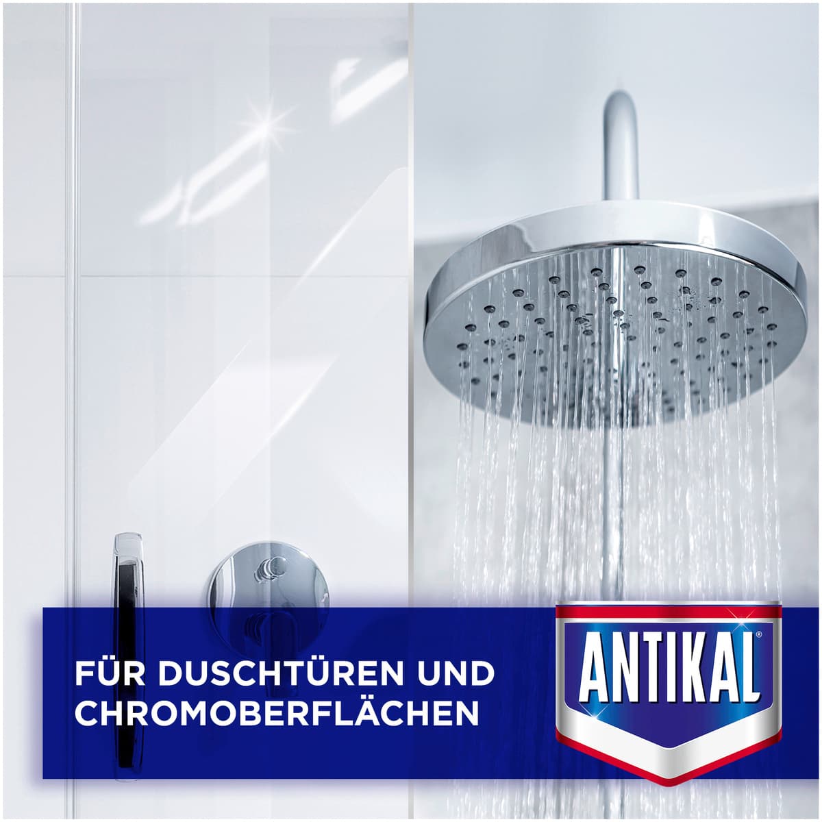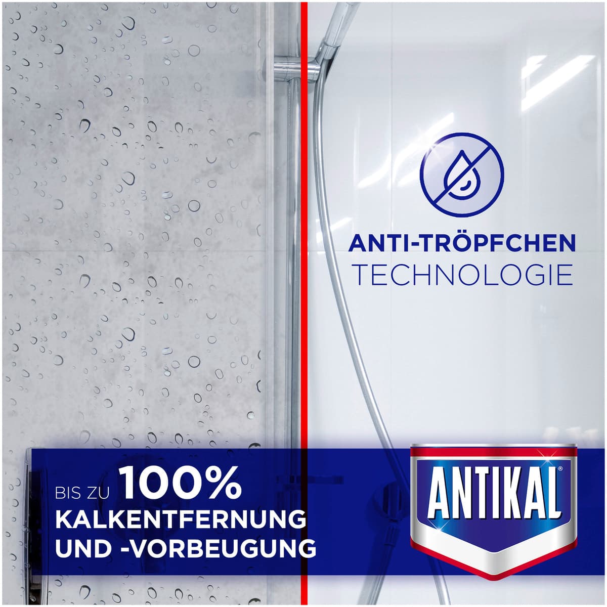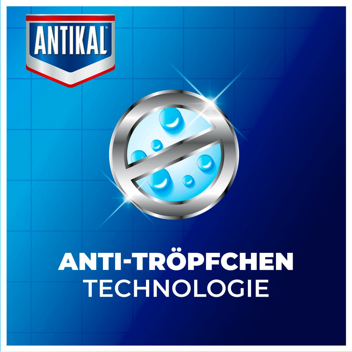 Antikal Kalkreiniger Spray Classic entfernt nicht nur Kalkstein, Seifenrückstände und Wasserflecken, sondern verhindert das erneute Auftreten von Kalkflecken dank seiner Anti-Tröpfchen Technologie. Ideal für die regelmäßige Verwendung in Ihrem Badezimmer, für saubere und glänzende Oberflächen Tag für Tag. Seine spezielle Formel bildet eine Schutzbarriere, um die erneute Bildung von Wasserflecken zu verhindern, selbst bei Wasser mit hohem Härtegrad. Die Reinigungsformel geht pfleglich mit Ihren Oberflächen um und eignet sich zur täglichen Reinigung.