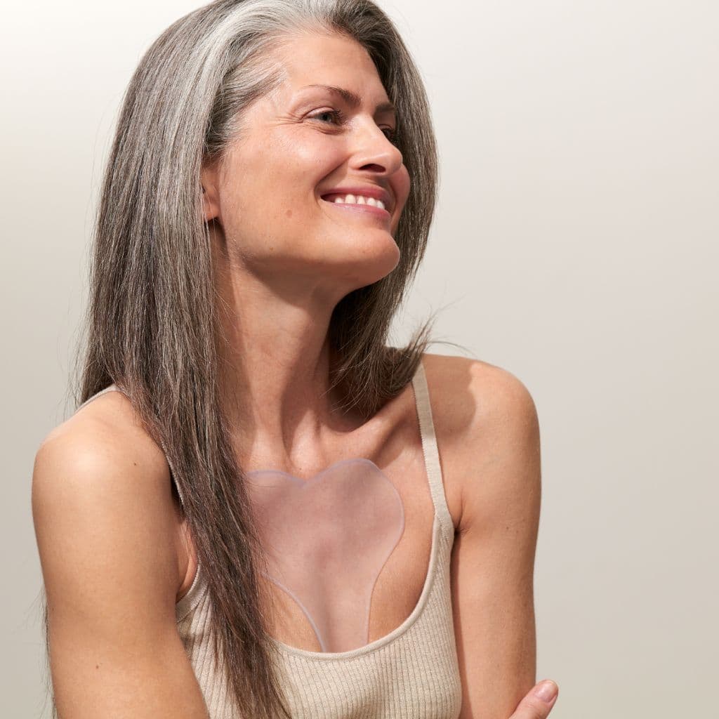 Dekolleté- und Seitenschläferfalten glätten in nur 1 Stunde – mit intensivem Schutz und Regeneration! Dieses wiederverwendbare Anti-Aging Pad mit Ectoin polstert Dekolleté- und Seitenschläferfalten sichtbar auf, schützt vor Haut- und Zellschäden und verlangsamt sichtbare Zeichen der Hautalterung. Gleichzeitig unterstütz es die natürliche Regeneration reifer oder beanspruchter Haut. Hergestellt aus hochwertigem, medizinischem Silikon ist es für alle Hauttypen geeignet. Dermatologische Tests bestätigen geschmeidigere Haut und sichtbar reduzierte Falten ab der 1. Anwendung.