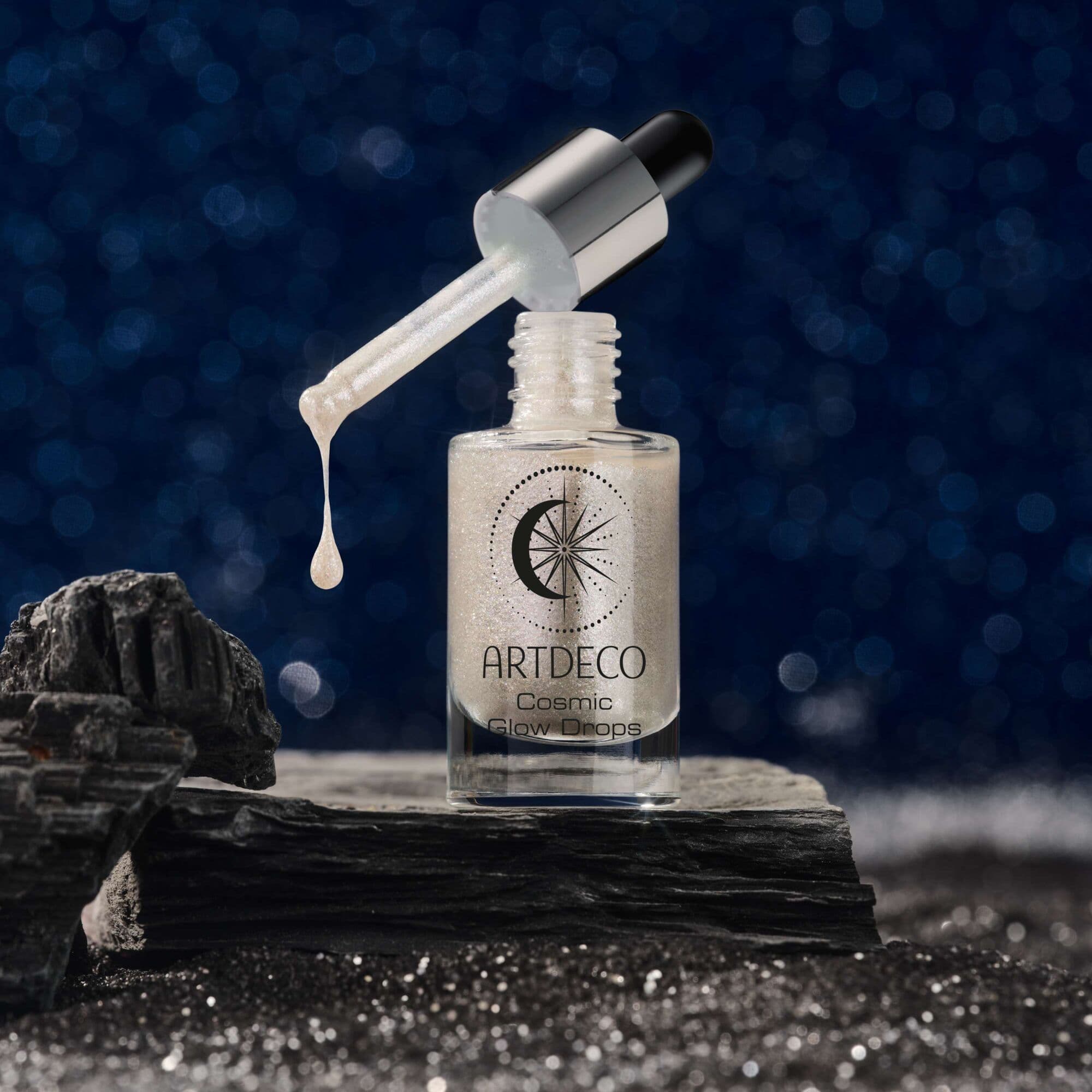 Entdecke die Cosmic Glow Drops: Nur 1-2 Tropfen dieses Schimmer-Öls und Du erhältst eine strahlende Haut mit dem gewissen Glow! Die ultrafeinen Glitzer Partikel zaubern Dir ein seidig schimmerndes Finish mit Sparkling-Effekt. Angereichert mit pflegenden Inhaltsstoffen, verwöhnt die leichte Textur Deine Sinne mit einem angenehmen Duft nach Kokos und Aprikose. Die Drops sind einfach zu verblenden, trocknen schnell und hinterlassen dabei kein klebriges Gefühl auf der Haut. Dank des Droppers ist eine leichte Dosierung möglich.