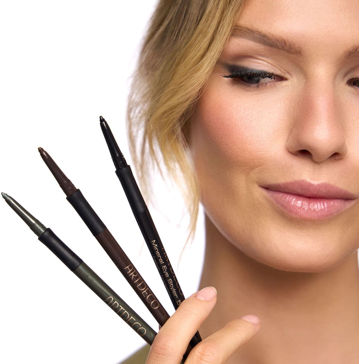 Je nach Augenform und Wunsch die äußere oder innere Augenkontur nachzeichnen und wenn gewünscht, leicht verblenden.Profi-Tipp: Für mehr Farbe trage den Mineral Eye Styler auf Dein Augenlid auf und verwische ihn. Trage in einem zweiten Schritt einen farblich abgestimmten oder kontrastreichen Lidschatten auf, um einen vielfältigen, dynamischen Effekt zu erzielen.