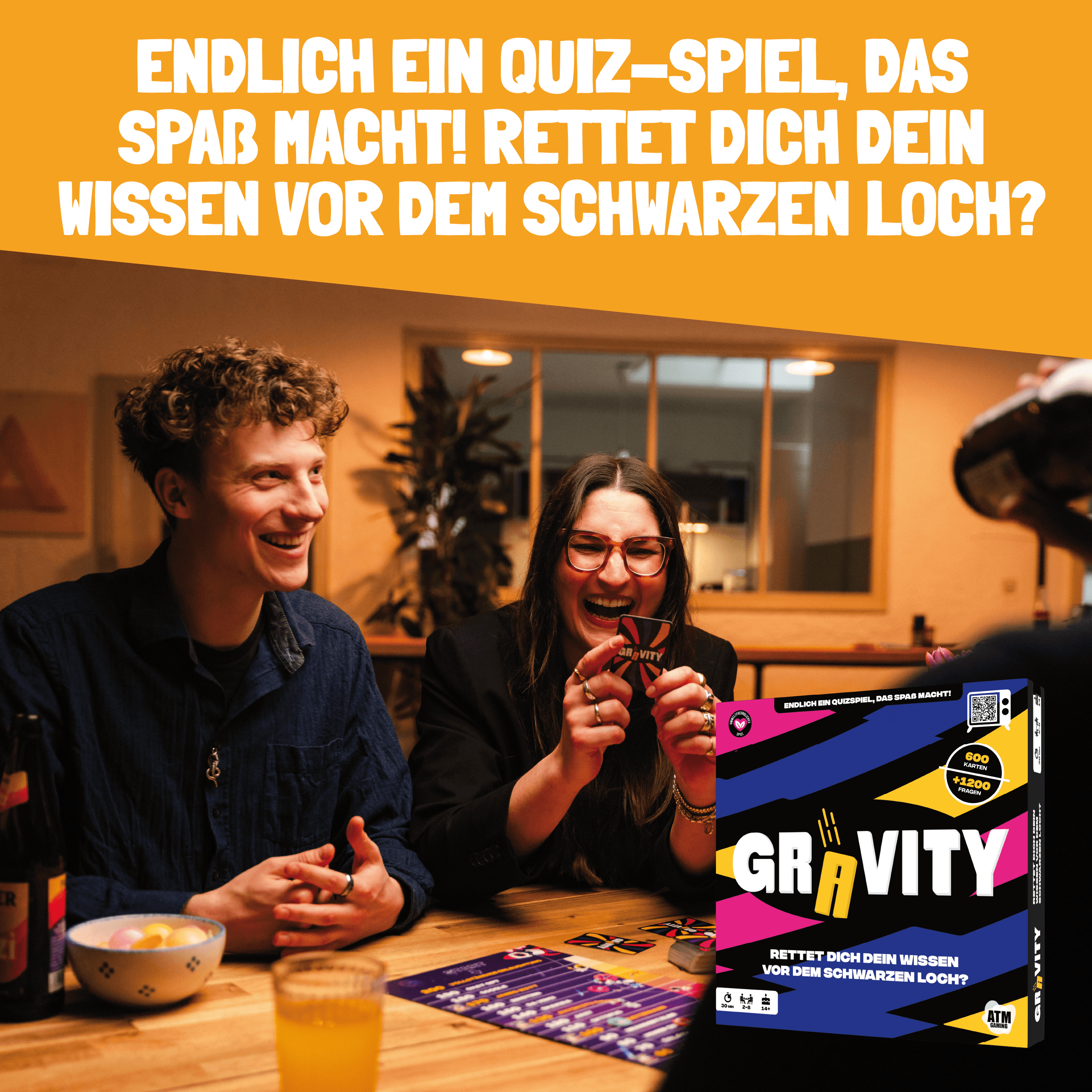 Gravity ist DAS Gesellschaftsspiel, bei dem es nicht darum geht zu gewinnen… sondern NICHT zu verlieren! Fordere deine Freunde und Familie und stelle ihnenüber 1200 Fragen aus 5 Wissenskategorien
