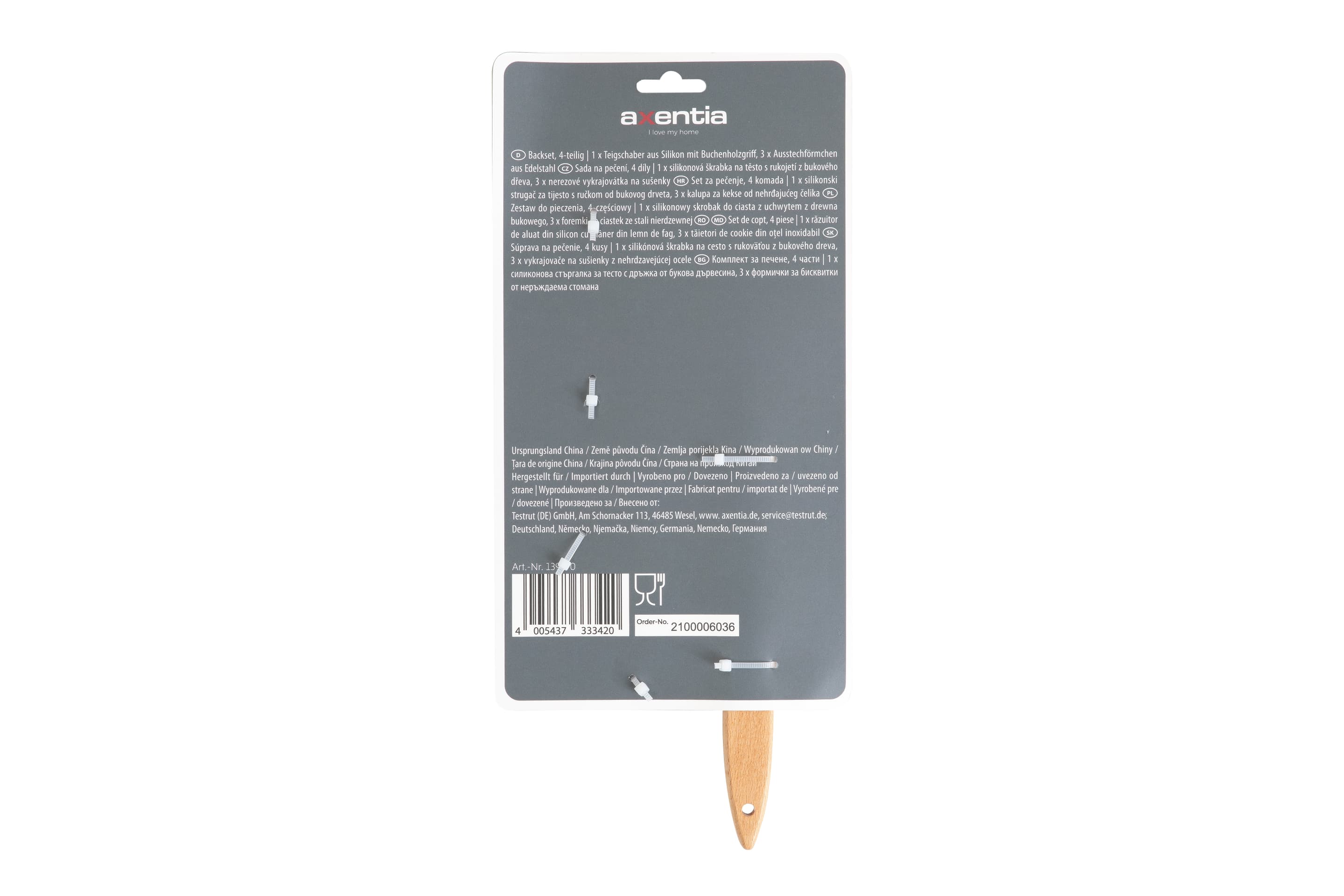 | Materialdetails | Schaber aus Silikon, Griff aus Buchenholz, Ausstechformen aus Edelstahl (430) |
