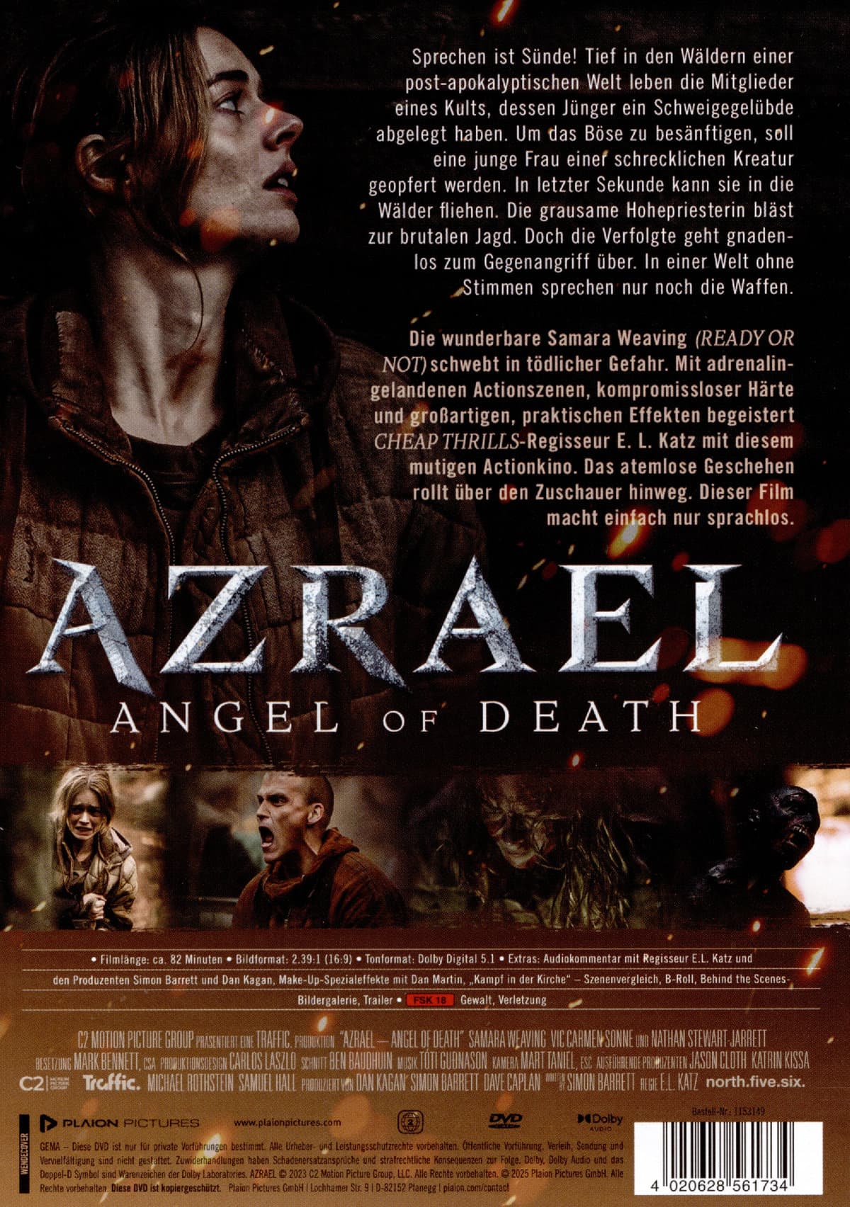 Sprechen ist Sünde! Tief in den Wäldern einer postapokalyptischen Welt leben die Mitglieder eines Kults, dessen Jünger ein Schweigegelübde abgelegt haben. Um das Böse zu besänftigen, soll eine junge Frau einer schrecklichen Kreatur geopfert werden. In letzter Sekunde kann sie in die Wälder fliehen. Die grausame Hohepriesterin bläst zur brutalen Jagd. Doch die Verfolgte geht gnadenlos zum Gegenangriff über. In einer Welt ohne Stimmen sprechen nur noch die Waffen. Die wunderbare Samara Weaving (READY OR NOT) schwebt in tödlicher Gefahr. Mit adrenalingelandenen Actionszenen, kompromissloser Härte und großartigen, praktischen Effekten begeistert CHEAP THRILLS-Regisseur E. L. Katz mit diesem mutigen Actionkino. Das atemlose Geschehen rollt über den Zuschauer hinweg. AZRAEL – ANGEL OF DEATH macht einfach nur sprachlos.
