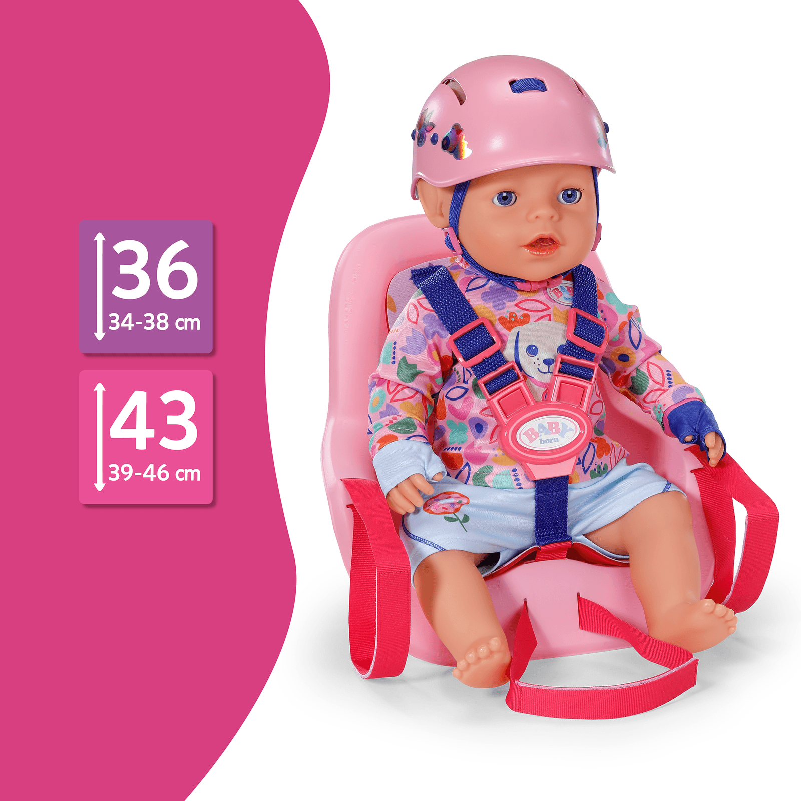 • Sicherer Halt: Dreipunktgurt sorgt dafür, dass die Puppe fest angeschnallt bleibt
