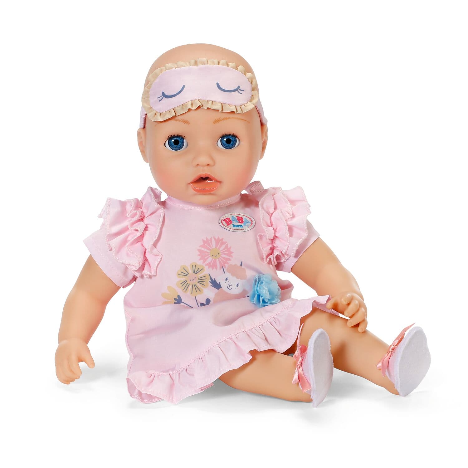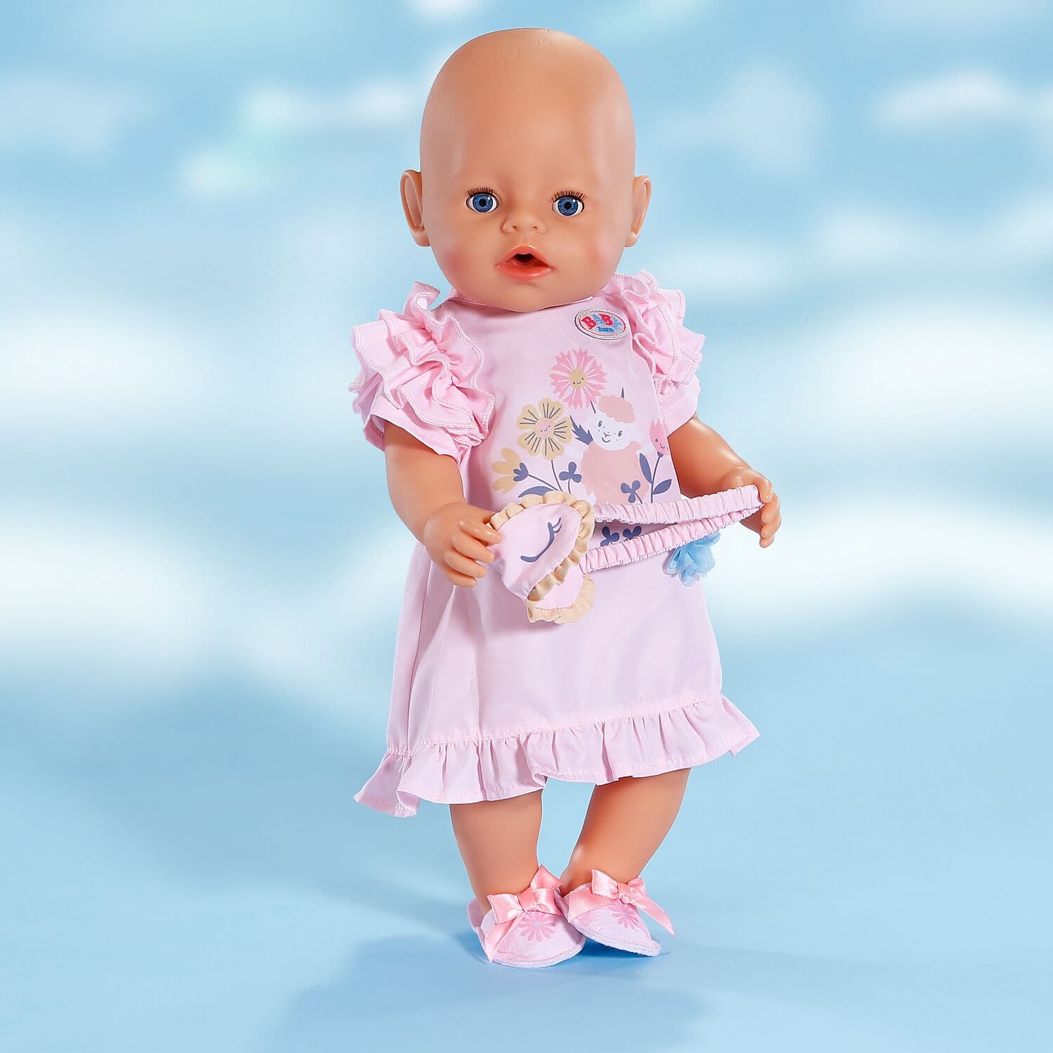 Mit diesem niedlichen Nachthemd-Set ist BABY born bereit für eine erholsame Nacht. Das weiche Nachthemd mit Rüschen-Details an Saum und Ärmeln sorgt für süße Träume, während die kuscheligen Pantoffeln und die Schlafmaske das Outfit perfekt abrunden. Ein Must-have für die Abendroutine.