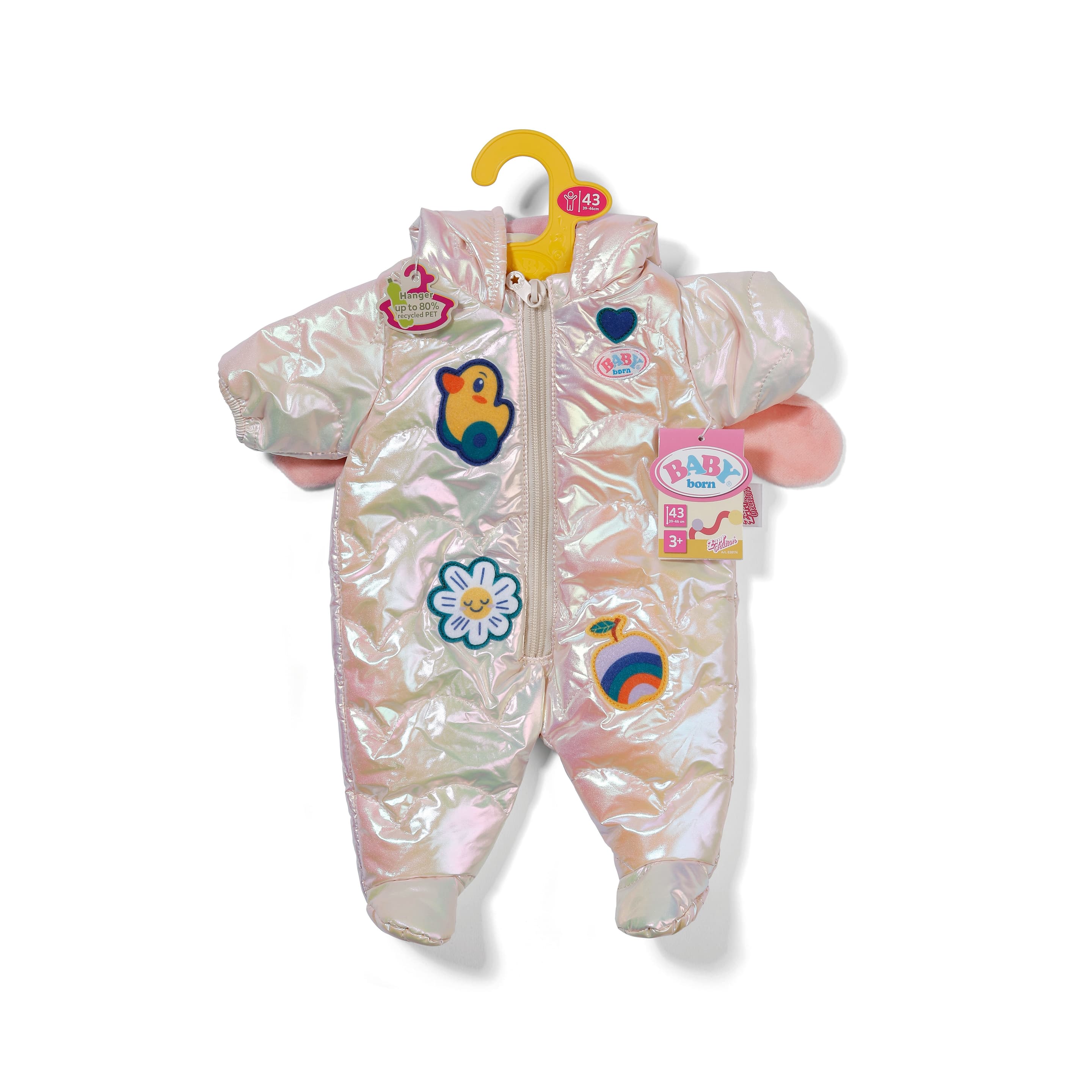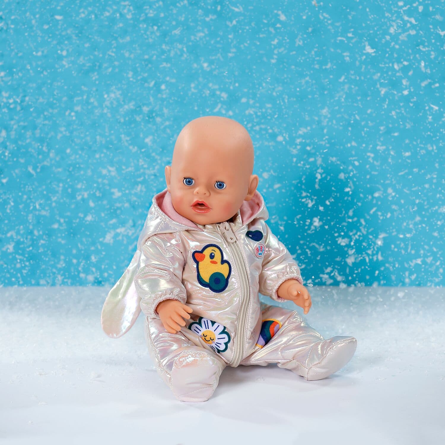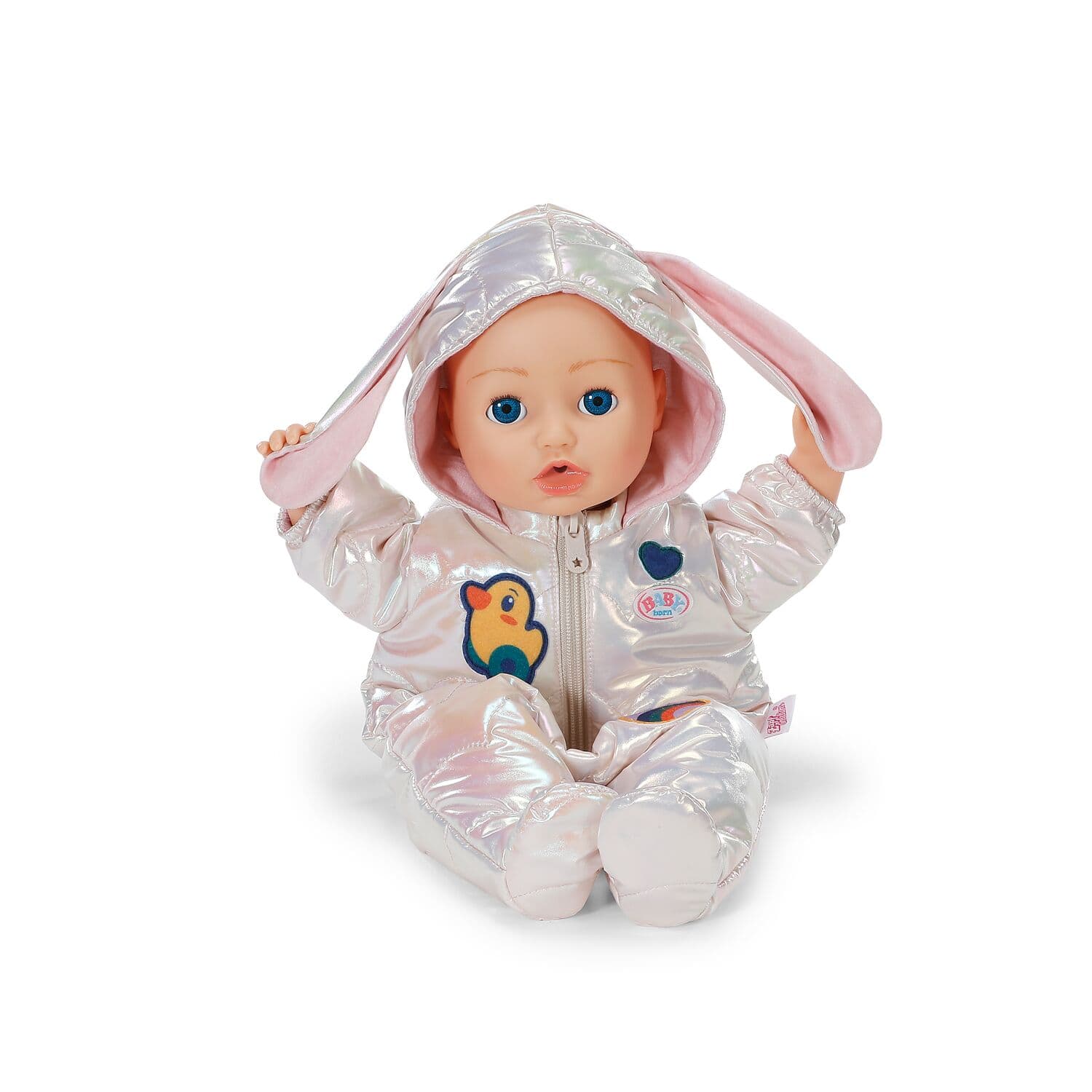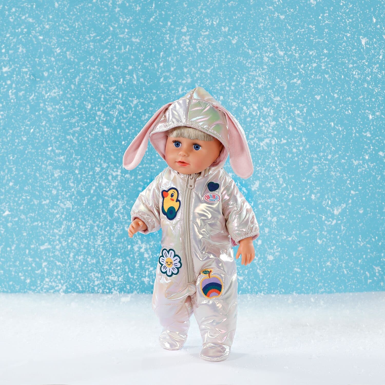 Dieser Schneeanzug für 43 cm große Puppen ist perfekt für kalte Tage! Mit seiner cremefarbenen Metallic-Optik und den süßen Hasenohren auf der Kapuze macht BABY born eine stylische Figur auf der Piste.