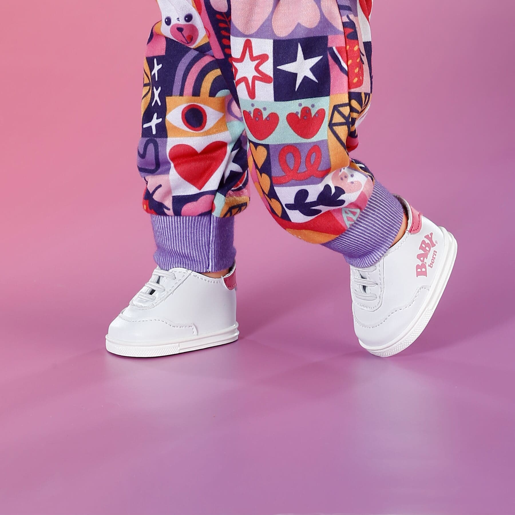 Diese trendigen Sneaker verleihen jeder 43 cm großen Puppe einen lässigen und sportlichen Look. Die Schuhe sind in zwei stylischen Varianten - türkis und pink- erhältlich und passen perfekt zu verschiedenen Outfits. Ob zum Jogginganzug oder zum Freizeitkleid – mit diesen Sneakern ist die Puppe immer modisch unterwegs.