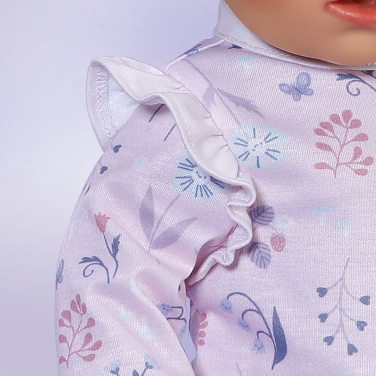 Mit seinem zauberhaften Allover-Waldmotiv bringt dieser Strampler natürliche Wärme ins Puppenzimmer. Die feinen Rüschenärmel und die sanften Farben machen BABY borns Outfit zu einem Liebling für Schlaf- und Spielstunden gleichermaßen.