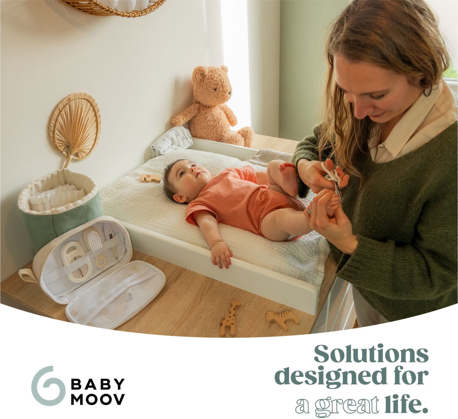 Weitere Pluspunkte des Pflegesets sind das zeitlose und moderne Design sowie die umweltfreundliche Konzeption. Im Sinne unserer GreenMoov-Strategie wird das Etui des Babypflegesets aus recycelten Stoffen hergestellt und in einer zertifizierten, plastikfreien Verpackung verkauft.