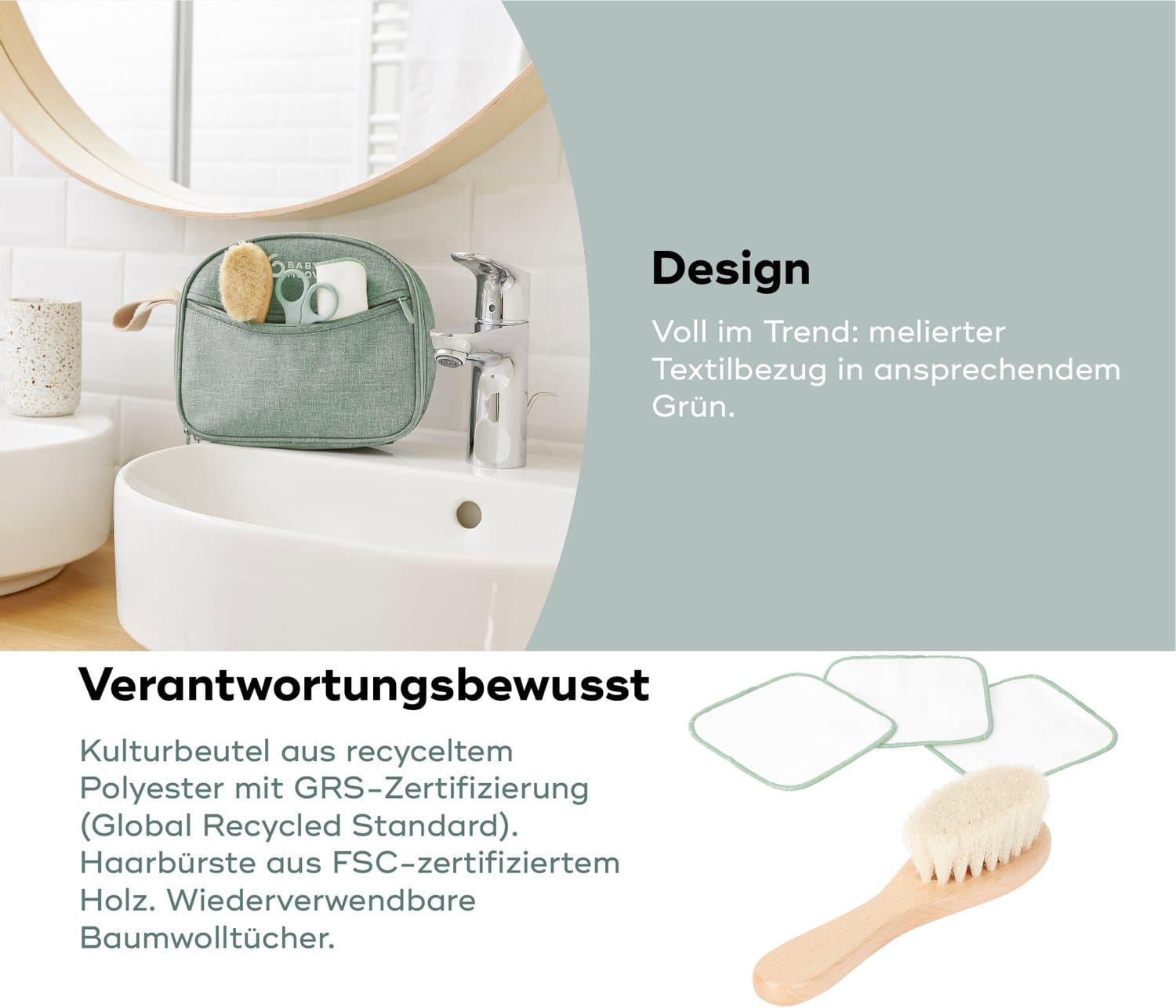 Das neue umweltfreundlich designte Babypflegeset in einer Tasche mit allen wichtigen Accessoires für die tägliche Babypflege. Ein nützliches Geschenk für werdende Eltern!