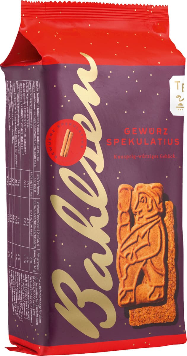 | Zutaten | WEIZENMEHL, Zucker, Palmöl, Glukose-Fruktose-Sirup, Backtriebmittel: Natriumcarbonate, Diphosphate; Zimt, MAGERMILCHPULVER, Gewürze, Stärke (WEIZEN), Salz, Aroma. Kann enthalten: EIER, MANDELN, HASELNÜSSE. |