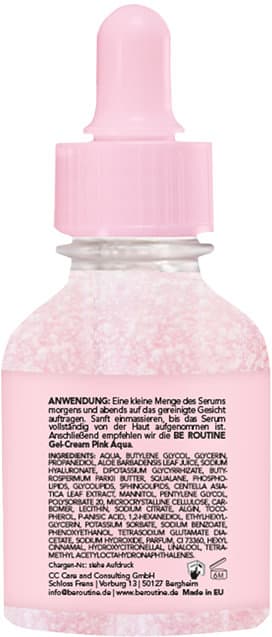 AnwendungshinweisEine kleine Menge des Serums morgens und abends auf das gereinigte Gesicht auftragen. Sanft einmassieren bis das Serum vollständig eingezogen ist. Abschließend mit der BE ROUTINE Gel-Cream Pink Aqua die Pflege-Routine beenden.